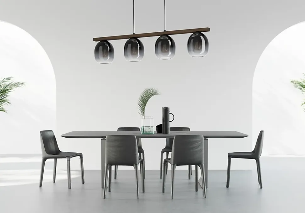 - Elle s’intègre parfaitement dans les intérieurs modernes et offre un éclairage chaleureux dans n’importe quelle pièce, que ce soit dans le salon ou la salle à manger, par exemple au-dessus d’une longue table.