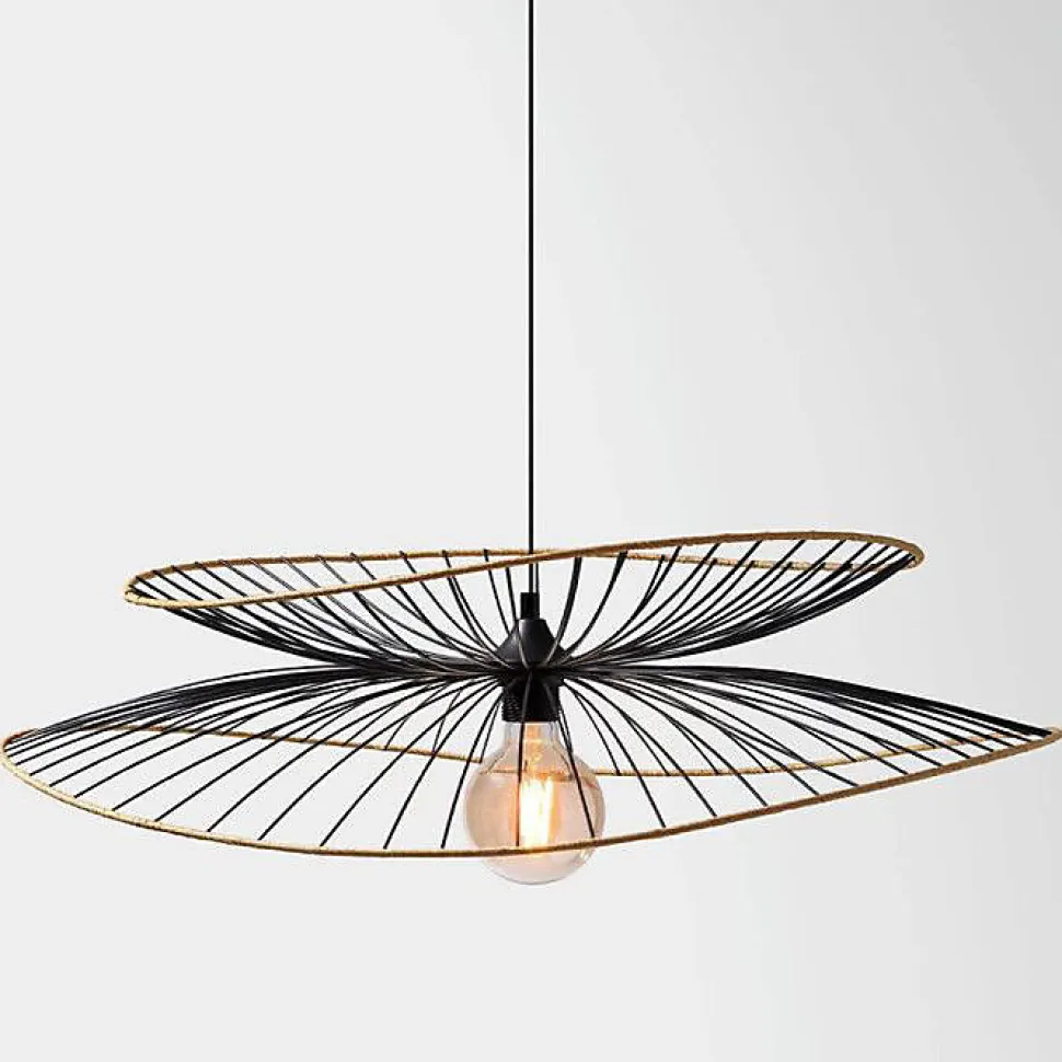 [img-27566-left-home_default] Description: Vous rêvez de donner un style contemporain à votre intérieur ? La suspension filaire « Alara » d’Atmosphera en métal est là pour vous. Un modèle tendance Le luminaire bimatière « Alara » se présente sous forme d’un double abat-jour en fer. Les contours sont recouverts de papier effet bois pour apporter de la chaleur au modèle. Grâce à son câble, vous pourrez ajuster la hauteur de votre lampe de plafond à votre convenance. La modernité dans un luminaire Cette suspension « Alara » présente une allure très design. 2-en-1, elle sera aussi utile pour éclairer votre pièce que pour la décorer, tant elle est élégante. Pour harmoniser votre décoration d’intérieur, pourquoi ne pas associer votre lampe « Alara » à une table basse en bois Atmosphera ? Le petit plus déco Installez une ampoule à filament pour accentuer le côté déco de votre luminaire. Spécificités techniques : Dimensions : D. 69,5 x H. 17,5 cm Longueur câble : 95 cm Matière de la structure : Fer Matière du supportCaractéristiques et avantages