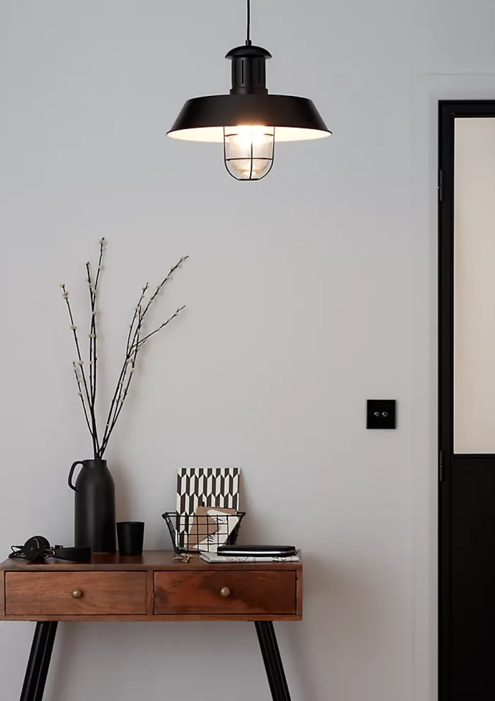 Nos suspensions ont été conçues dans un certain nombre de formes, de matières et de finitions pour vous permettre de trouver facilement celle qui vous convient. Cette suspension noire peut parfaitement servir de source de lumière principale