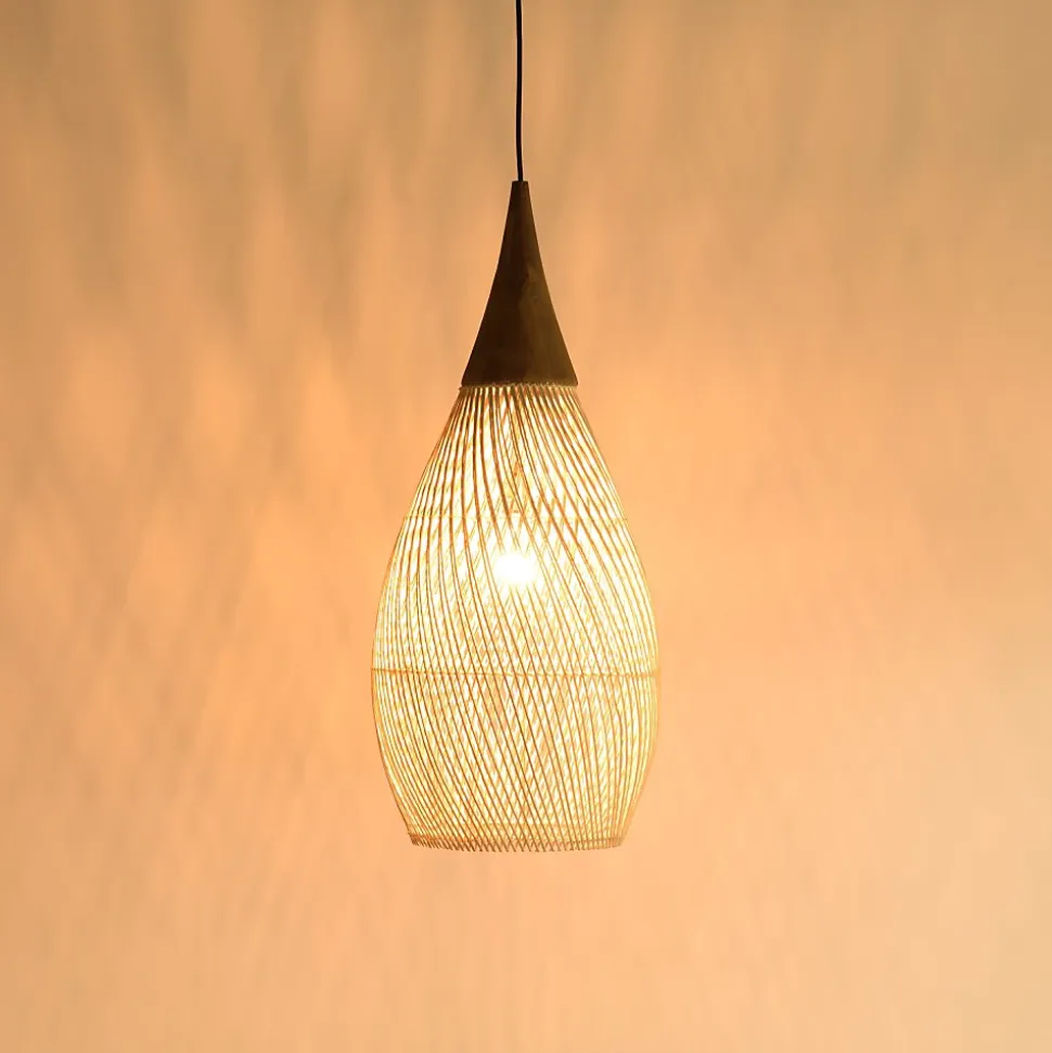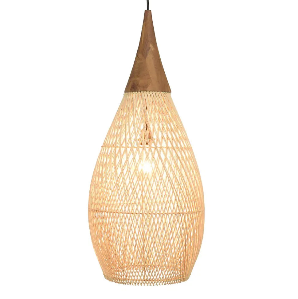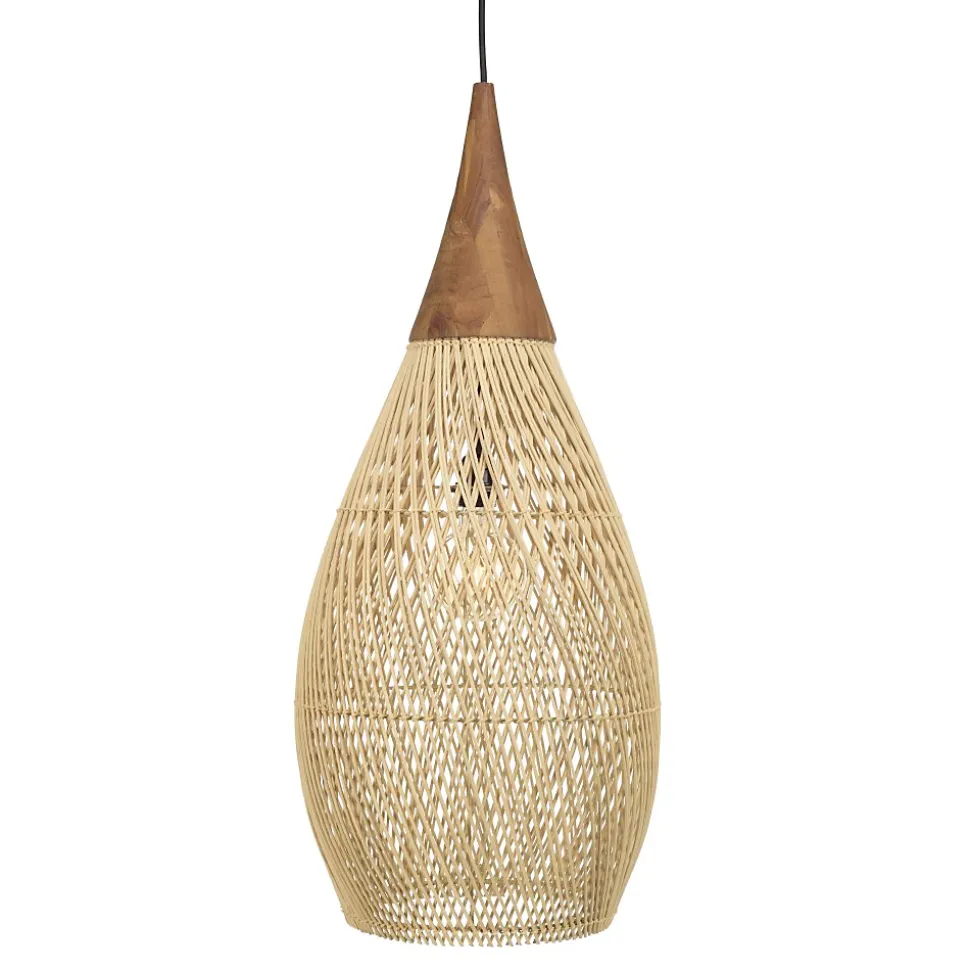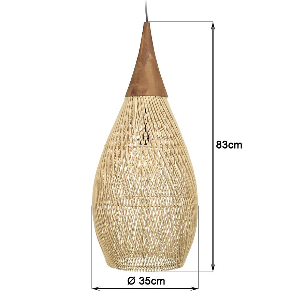 Suspension ‘goutte’ 35x35cm rotin couleur naturelle et teck. Article en Rotin/Teck recyclé/Acier. Dimension 35 x 35 x 83 cm.