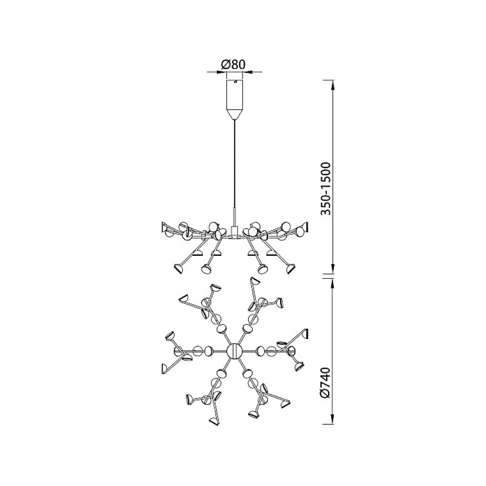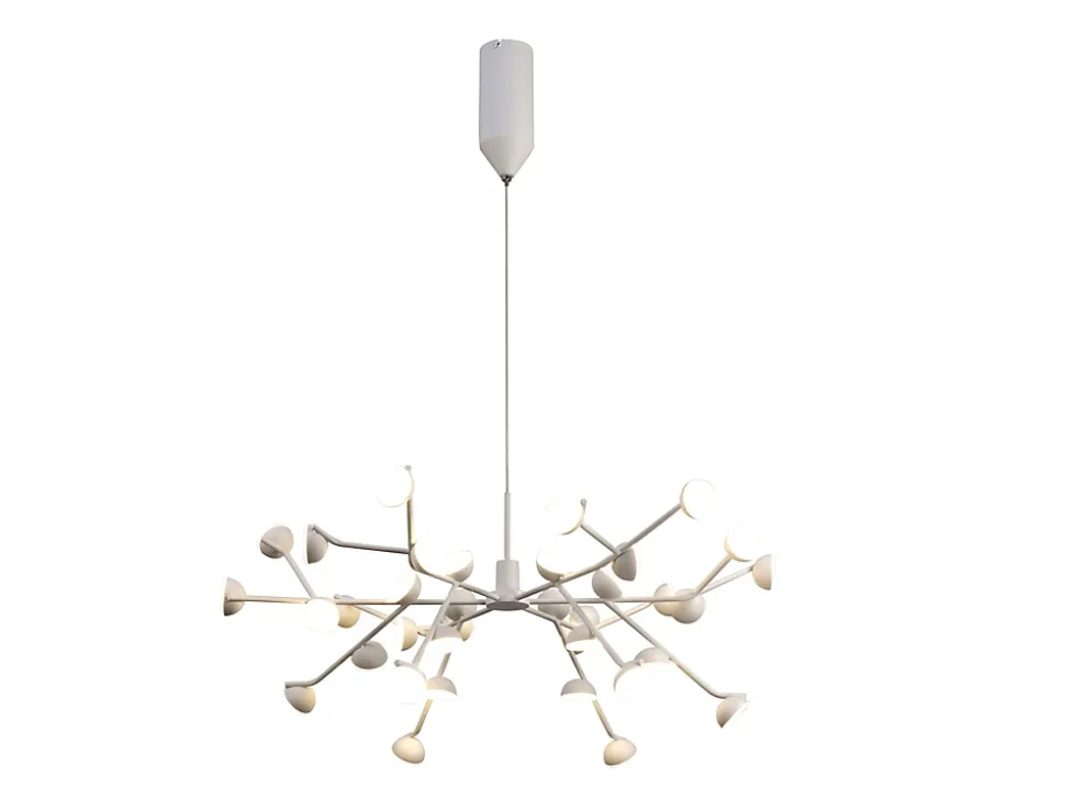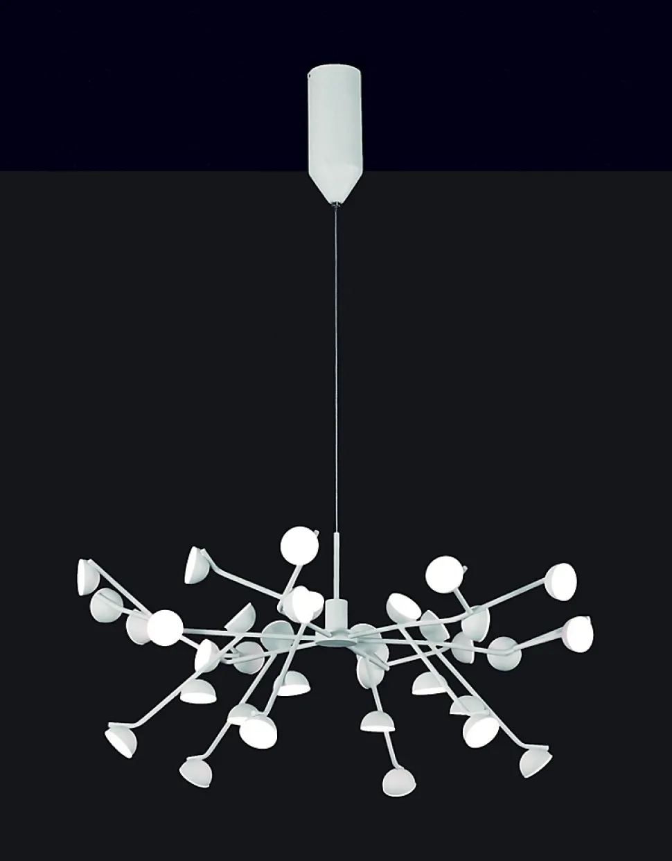 Suspension ADN 74 cmTrès élégante suspension de la collection ADN.Caractéristiques:Matière: AluminiumFinition diffuseur: Blanc EpoxyGarantie: 5 Ans.Hauteur totale: 35 à 150 cmDiamètre: 74 cmClasse I. IP: IP20. Éclaraige: (inclus) LED 100W – 3000K – 5500 lmLED interchangeable