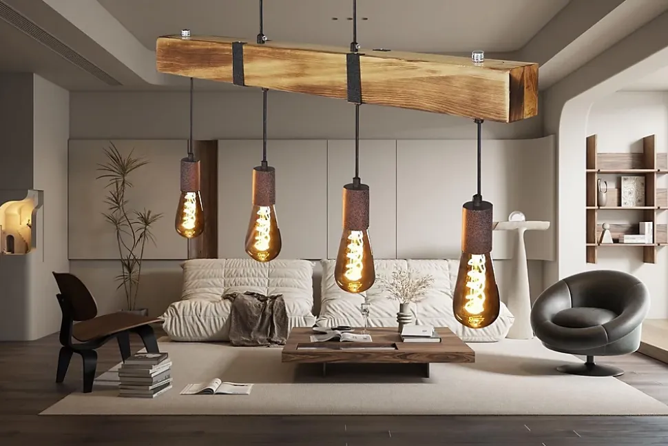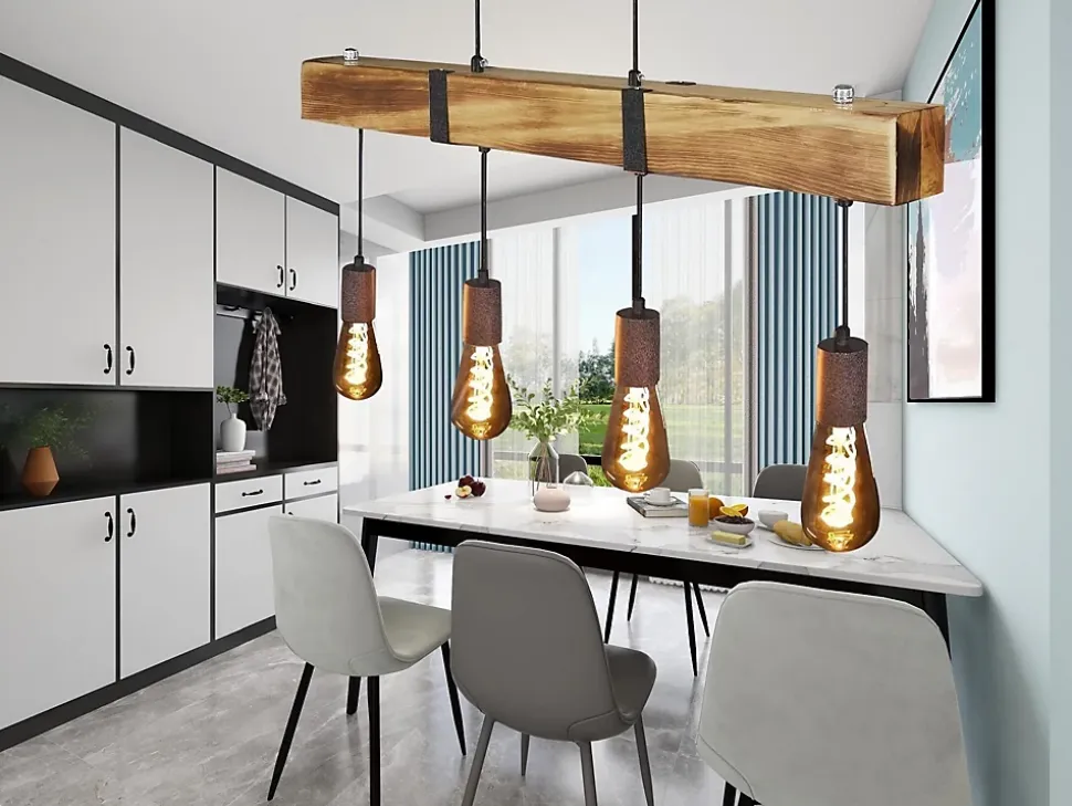 Le luminaire à suspendre « HONI » est une pièce maîtresse qui apportera une touche de sophistication à votre intérieur. Avec son design moderne et épuré, il s’intègre parfaitement dans n’importe quelle pièce, que ce soit dans un salon, une salle à manger ou un bureau.Caractéristiques Techniques :- Dimensions : 70X70CM- Poids : 3,8 kg- Matériaux : Fer & Bois naturel – Couleur : Noir avec Base en bois clair – Source lumineuse : Ampoule E27*4 (non fournie)- Puissance maximale : 0,30W ( voltage : AC220v )- Luminosité : Compatible avec des ampoules dimmables- Classe énergétique : A+Avantages :- Design moderne : Apporte une touche contemporaine à votre décoration.- Facilité d’installation : Livré avec des instructions claires.- Polyvalent : Idéal pour les espaces résidentiels et commerciaux.Utilisation :Le luminaire « HONI » est conçu pour être suspendu au-dessus d’une table, d’un comptoir ou d’un îlot de cuisine. Son éclairage doux et chaleureux crée une atmosphère accueillante et conviviale.Entretien :Pour un entretien facile, nettoyez régulièrement l’abat-jour avec un chiffon doux et sec. GarantieCe produit est couvert par une garantie de 2 ans contre tout défaut de fabrication.