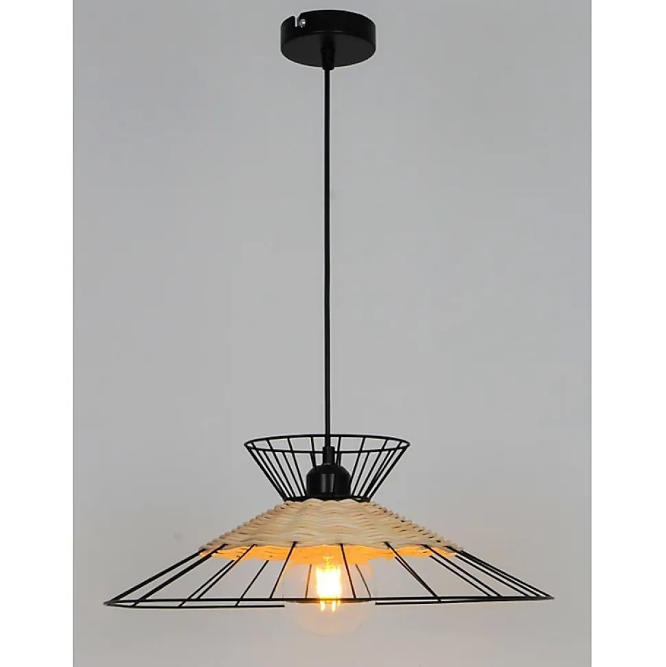 Les caractéristiques techniquesCette suspension Led lumineuse en rotin naturel et armature métal mesure 1,20 m de hauteur pour 45 cm de diamètre.La suspension Manille fonctionne avec une ampoule E27 60 watts maximum (non fournie) ce qui vous offre l’opportunité de choisir température de couleur et puissance d’éclairage selon vos goûts.Les avantages esthétiques Ce lustre au style bohéme chic apportera une ambiance nature à votre décoration intérieure.Avec sa structure aérienne aux formes arrondies, ce luminaire en rotin naturel et armature métal donnera un aspect moderne à votre intérieur.Que ce soit dans votre salon pour une ambiance chaleureuse, dans votre entrée pour un éclairage fonctionnel, au-dessus de votre table à manger ou de votre îlot central, la suspension Manille trouvera parfaitement sa place dans votre maison.Pour un usage professionnel, vous installerez la suspension Manille dans votre salle de restaurant ou un bar.Afin de renforcer l’esthétique de votre lustre, nous vous conseillons de l’équiper d’une ampoule à filament design ambré.