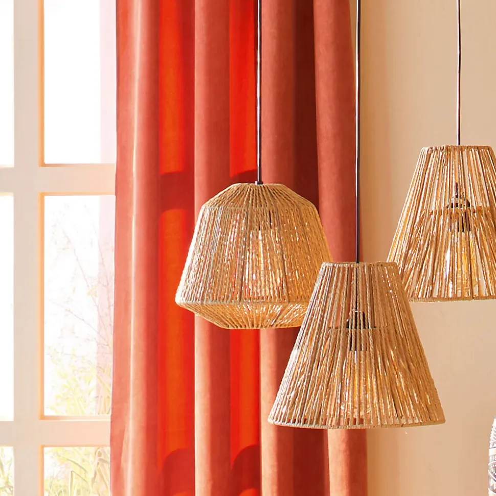 À la recherche d’une idée déco originale pour une chambre ? La suspension « Jily » Atmosphera vous séduira par ses formes douces.Le naturel d’abordCette suspension « Jily » diffuse une lumière confortable. Idéale pour éclairer une chambre, elle crée une ambiance intime et réconfortante. Avec ses finitions en corde et ses formes géométriques, elle s’intègre sans effort dans tous les intérieurs.Une lumière apaisanteEsthétique et robuste, cette suspension est dotée d’une structure en fer. Son bel effet tamisé n’éblouit pas le regard. Pour la nettoyer, pensez à l’épousseter périodiquement à l’aide d’un plumeau afin d’éviter l’accumulation de poussière.Pour embellir une pièce de vie et y apporter plus de lumière, associez ce luminaire avec une gamme de mobilier Atmosphera aux tons clairsLe petit plus décoCette suspension originale sera à sa place au-dessus d’une table basse. Associez des lustres de formes différentes pour un effet d’accumulation tendance.