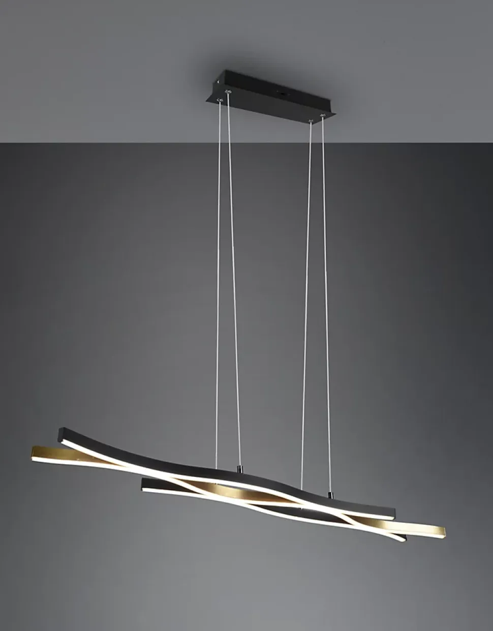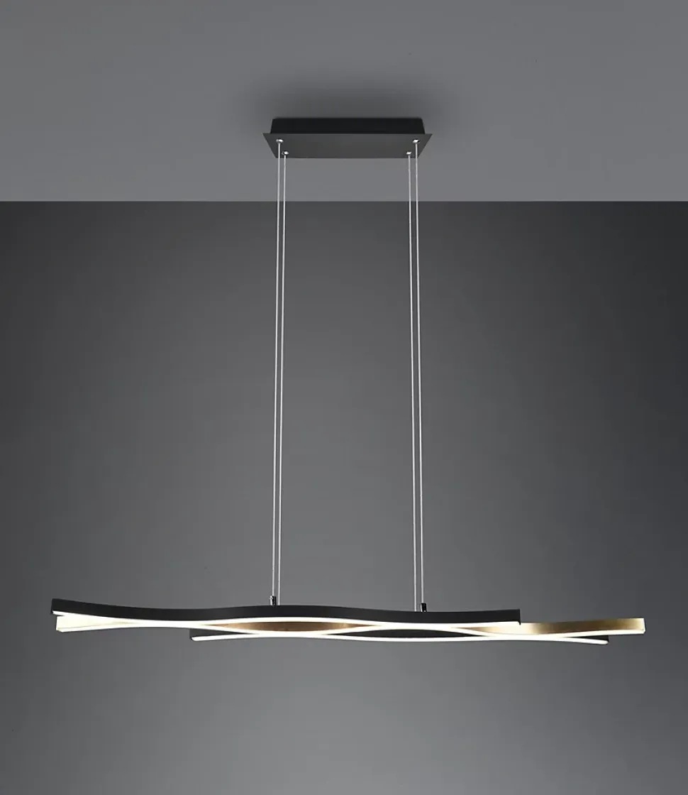 Les caractéristiques techniquesLe luminaire suspendu BLAZE de TRIO se distingue par sa forme incurvée, idéale pour mettre en valeur votre salle à manger ou un espace de repas. Avec ses matériaux élégants en laiton mat et métal noir mat, ce luminaire s’intègre parfaitement dans les intérieurs modernes et sophistiqués.Grâce à son variateur SWITCH, il est possible d’ajuster la luminosité entre 100 %, 50 % et 25 % pour s’adapter à toutes vos ambiances lumineuses. De plus, ce luminaire permet de régler la température de couleur (blanc chaud, blanc neutre ou blanc lumière du jour), offrant ainsi une flexibilité optimale pour chaque situation.Avantages esthétiques et pratiquesLa suspension BLAZE est équipée de la technologie LED moderne, offrant non seulement une lumière de qualité supérieure mais aussi une grande efficacité énergétique. Avec une puissance de 35W pour un flux lumineux de 4300 lm, elle garantit une luminosité parfaite pour vos repas en famille ou entre amis.Les LED intégrées sont économes en énergie, permettant des économies jusqu’à 80 % par rapport aux lampes halogènes traditionnelles. En outre, elles possèdent une longue durée de vie de 30 000 heures et génèrent moins de chaleur, contribuant ainsi à préserver l’environnement.Que ce soit dans votre salle à manger ou au-dessus de votre table de cuisine, le luminaire suspendu BLAZE apportera une touche de sophistication et un éclairage fonctionnel à votre intérieur.