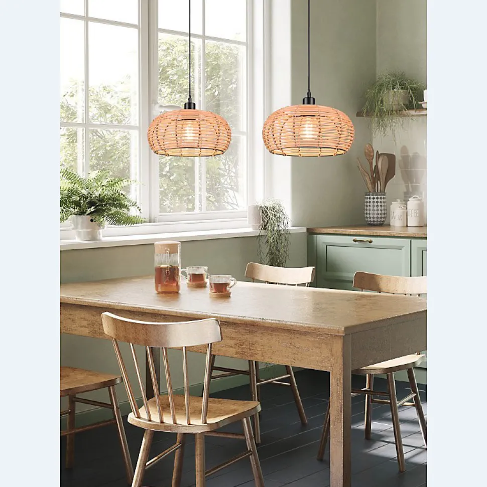 Les caractéristiques techniquesLa suspension Led Inga est constituée d’une rosace en métal noir, d’un abat-jour en rotin et d’un câble de suspension réglable en hauteur.Vous pourrez y adapter une ou 3 ampoule Led culot E27(selon modèle) d’une puissance maximale de 40 watts. A vous de choisir son intensité et sa température de couleur afin de définir l’ambiance que vous souhaitez.Les avantages esthétiques Surfez sur la tendance bohème chic et matériaux naturels avec la suspension Inga de Trio.Elle a été créée par les designers de la maison Trio dans un souci de sobriété esthétique.Son abat-jour en maillage rotin constraste avec le métal noir de la rosace et de l’armature.Pour mettre en valeur l’esthétique de ce lustre, nous vous conseillons d’utiliser une ampoule à filament.Ce luminaire trouvera sa place dans votre salon ou salle à manger ou dans une montée d’escaliers ou une entrée.