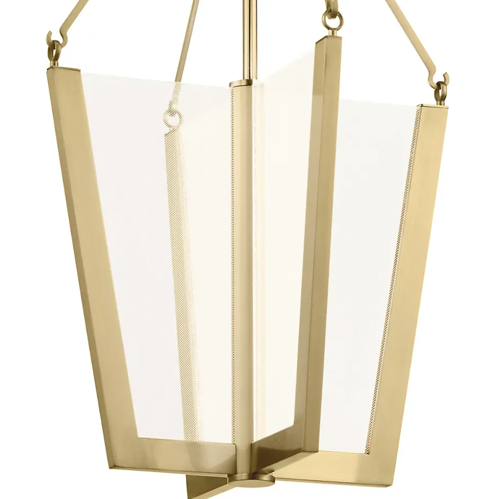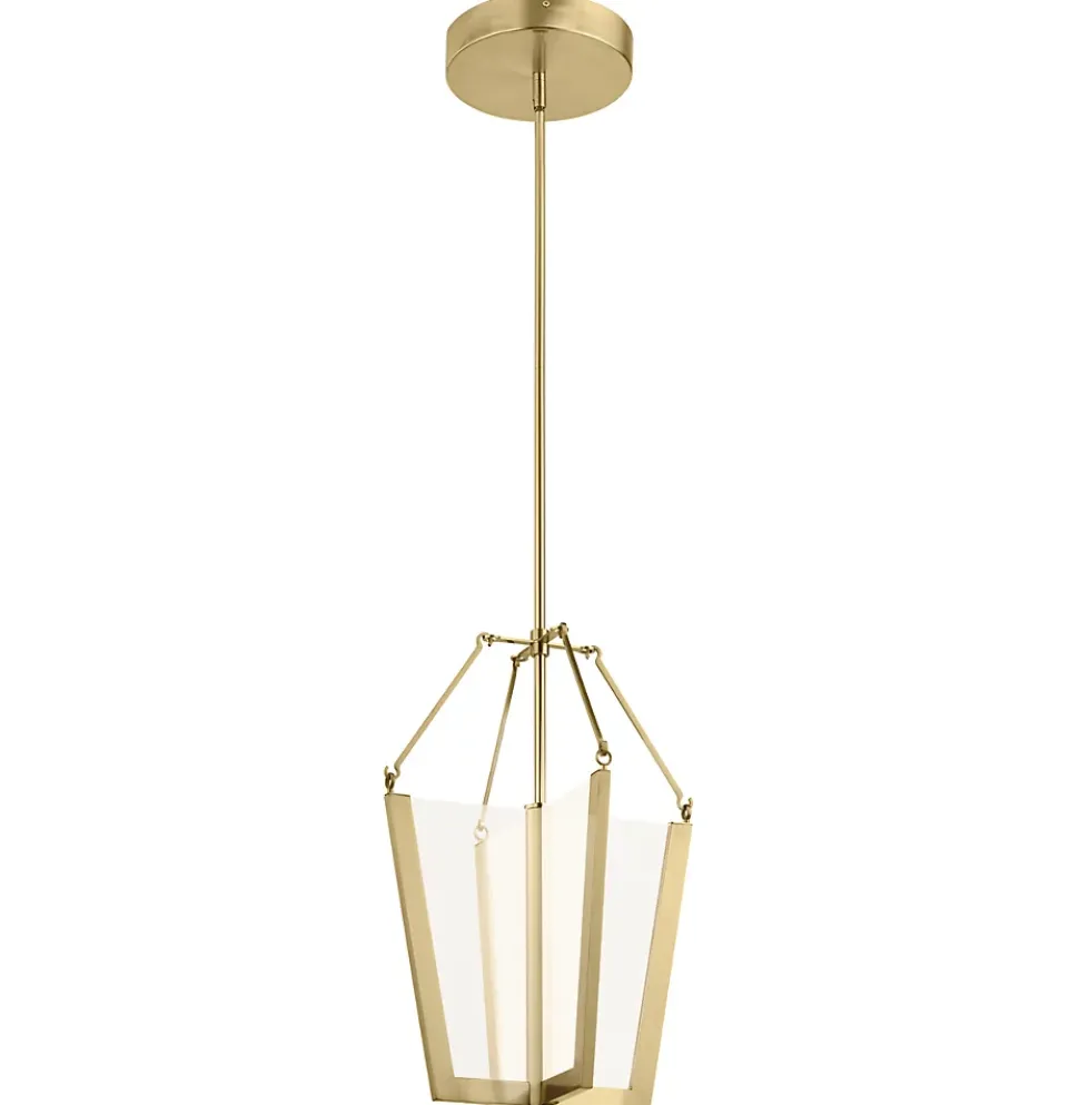 La collection Calters présente un design moderne de lanterne effilée dans une finition or champagne. Les bandes LED dissimulées à intensité variable éclairent des panneaux de guidage de la lumière en acrylique clair avec un motif en pointillé pour un design classique et moderne.