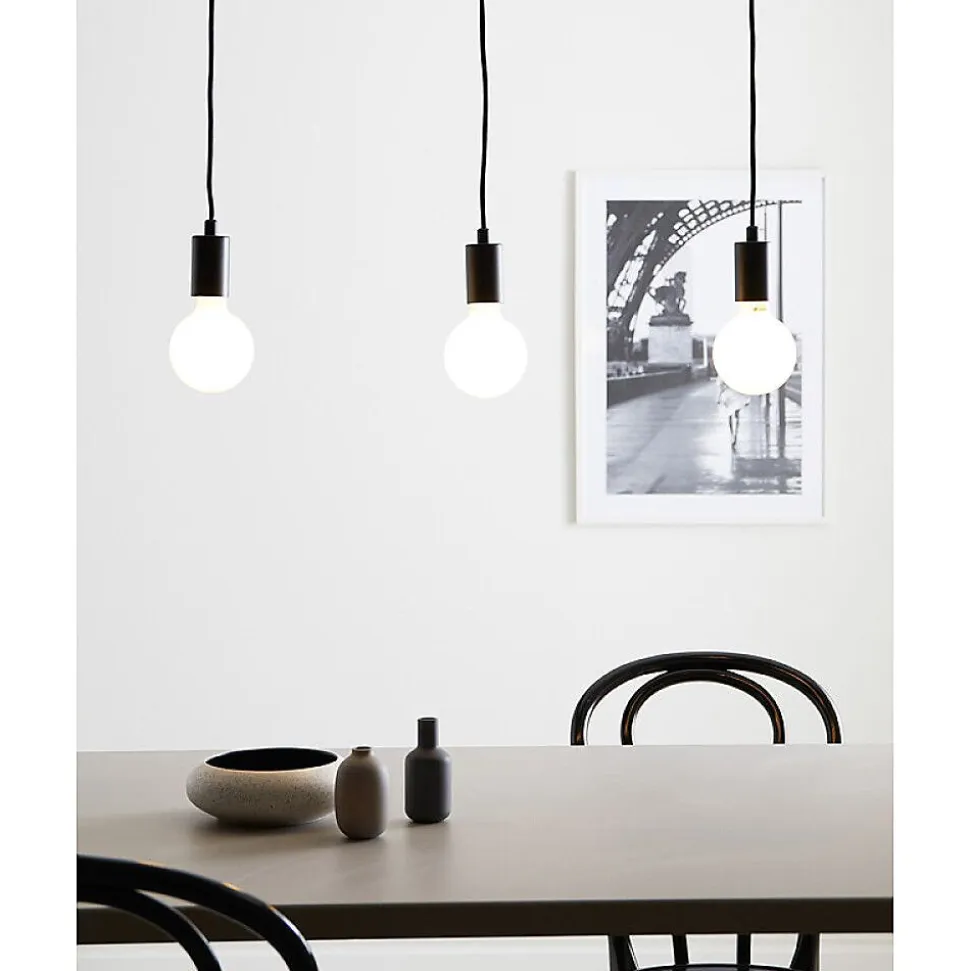 Les caractéristiques techniquesCette suspension lumineuse en métal noir fonctionne avec 3 ampoules E27, non fournies, ce qui vous offre l’opportunité de choisir température de couleur et intensité lumineuse en fonction de vos goûts et besoins.Elle est composée d’une rosace en métal laqué noir de forme rectangulaire, trois cordons textile noirs et 3 douilles métal noires.Les avantages esthétiquesLes designers de Markslöjd, spécialiste suédois de l’éclairage depuis plus de 50 ans, ont conçu la ligne Sky pour vous permettre d’harmoniser vos éclairages tout en jouant sur la forme (en ligne ou en rond) et les matières (laiton ou métal laqué mat noir).Cette suspension est un luminaire original à l’esthétique simple et épurée.Vous pourrez installer la suspension Sky dans votre salon, votre salle à manger, un couloir, une chambre ou une cage d’escalier.Pour un usage professionnel, elle éclairera agréablement un hall d’accueil ou une salle de restaurant.Pour un effet esthétique original, nous vous conseillons d’équiper ce luminaire d’ampoules à filament.