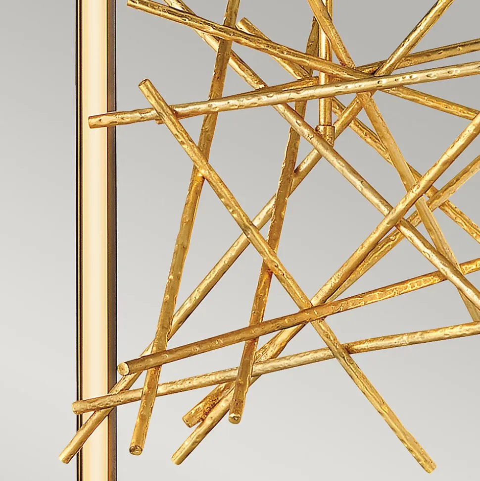 Le design époustouflant de Styx fusionne un glamour riche avec un style moderne pour une silhouette dynamique et captivante avec des éléments inattendus. Un cadre ouvert à LED intégré est entièrement dimmable, composé d’angles nets dans une finition noire chic. Le cadre illumine des branches métalliques texturées en or doré, mêlant des éléments organiques et contemporains.