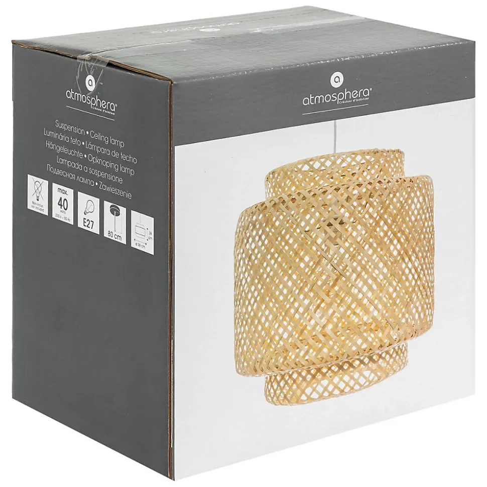Vous rêvez de donner une note naturelle pour votre salon ? La suspension « Liby » Atmosphera saura vous séduire.Une suspension durableTressée à la main, la suspension « Liby » diffusera une lumière douce dans votre pièce grâce à sa structure ajourée. Le bambou permettra aussi à votre suspension de résister au temps. Elle apportera ainsi une belle note d’originalité à votre espace.Créez une ambiance naturelle chez vousPlutôt compacte, la suspension pourra s’accrocher dans toutes vos pièces. Son design naturel aura pour effet de rajeunir votre pièce. Pour l’entretenir, c’est simple : passez régulièrement un coup de chiffon sec dessus.Pour parachever la décoration de votre espace, placez un lampadaire en bois Atmosphera pour toujours plus d’invitation au bien-être.Le petit plus décoPour un côté bohème, mixez les matières naturelles avec du velours ou des tentures colorées.