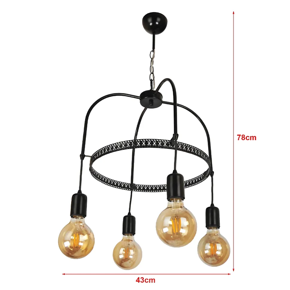 SuspensionCette lampe suspendue stylée et moderne sera l’ornement de la pièce en s’adaptant à la décoration de la maison.Description :- luminaire de style intemporel- conçu pour un éclairage intérieur- doté de 4 douillesCaractéristiques techniques :- Douille : 4 x E27, max. 60W (livraison sans ampoule)- Alimentation : 230V, 50HzMatière :métalDimensions (hauteur x largeur x profondeur) :78 x 43 x 43 cmCouleur :noirContenu de la livraison :1 x Suspension [l’ampoule ne fait pas partie de l’offre]Produit de la marque :[lux.pro]