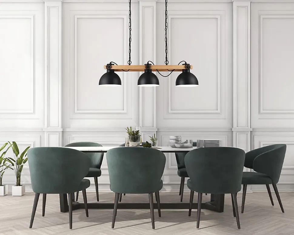 - Cette suspension mêlant habilement bois et métal s’intègre parfaitement dans les tendances vintage et industriel. Elle offre un éclairage unique dans votre pièce, que ce soit dans le salon ou dans la salle à manger, par exemple au-dessus d’une longue table.
