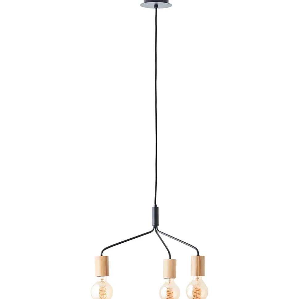 Suspension lumineuse Elyna 3 lumières E27 A60 40W IP20 bambou noir mat Brilliant