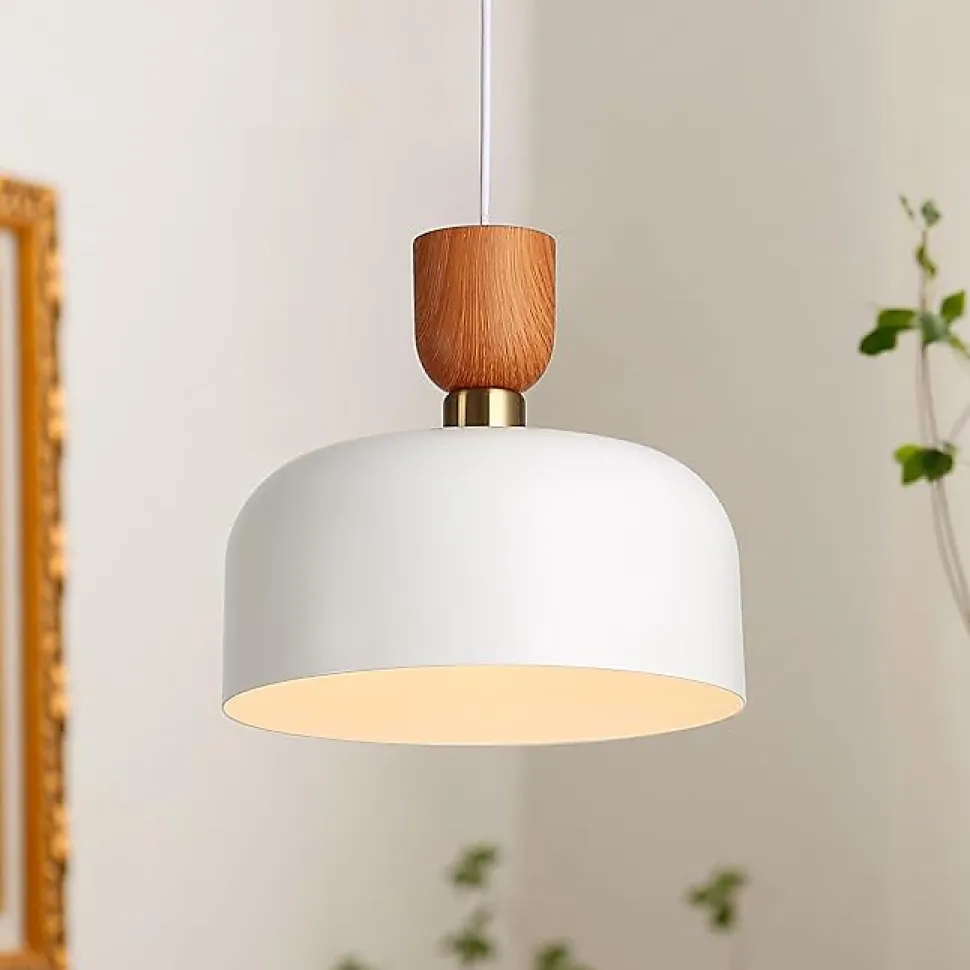 Suspension Moderne IntemporelleDesign Polyvalent et légantEsthétique : Design simple avec une belle courbe en arc.Matériaux : Combinaison de bois massif avec des détails en métal, créant un look intemporel qui s’harmonise avec une variété de styles décoratifs tels que moderne, rustique, du milieu du siècle, vintage, industriel et rétro.Large ApplicationPolyvalence : Utilisation individuelle, par paire ou en groupes de trois. Peut être installé en alignement ou de manière aléatoire dispersée.Espaces Recommandés : Idéal pour la cuisine, la salle à manger, le salon, la chambre à coucher, l’entrée, la salle de bain et autres espaces intérieurs.Matériaux de Haute QualitéComposants :Câble flexible et durable, homologué UL.Abat-jour en fer avec finition mate opaque.Partie supérieure de l’abat-jour en quincaillerie avec finition dorée et bois massif poli.Plaque de montage en dôme en métal avec finition peinture mate.Facile à InstallerCompatibilité : Peut être installé sur des plafonds inclinés ou plats.Instructions Incluses : Le paquet comprend le câblage nécessaire et des instructions claires pour une installation rapide et facile.Type de Douille : E27, compatible avec les ampoules incandescentes, LED et CFL.DimensionsCâble ajustable : Longueur de 100 cm.Abat-jour : Diamètre de 30 cm et hauteur de 28 cm.Ajoutez une touche de sophistication et de fonctionnalité à vos espaces intérieurs avec cette suspension moderne et intemporelle.