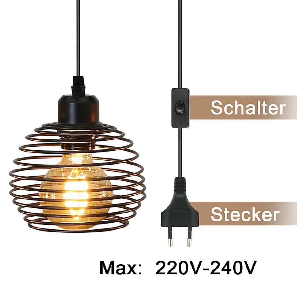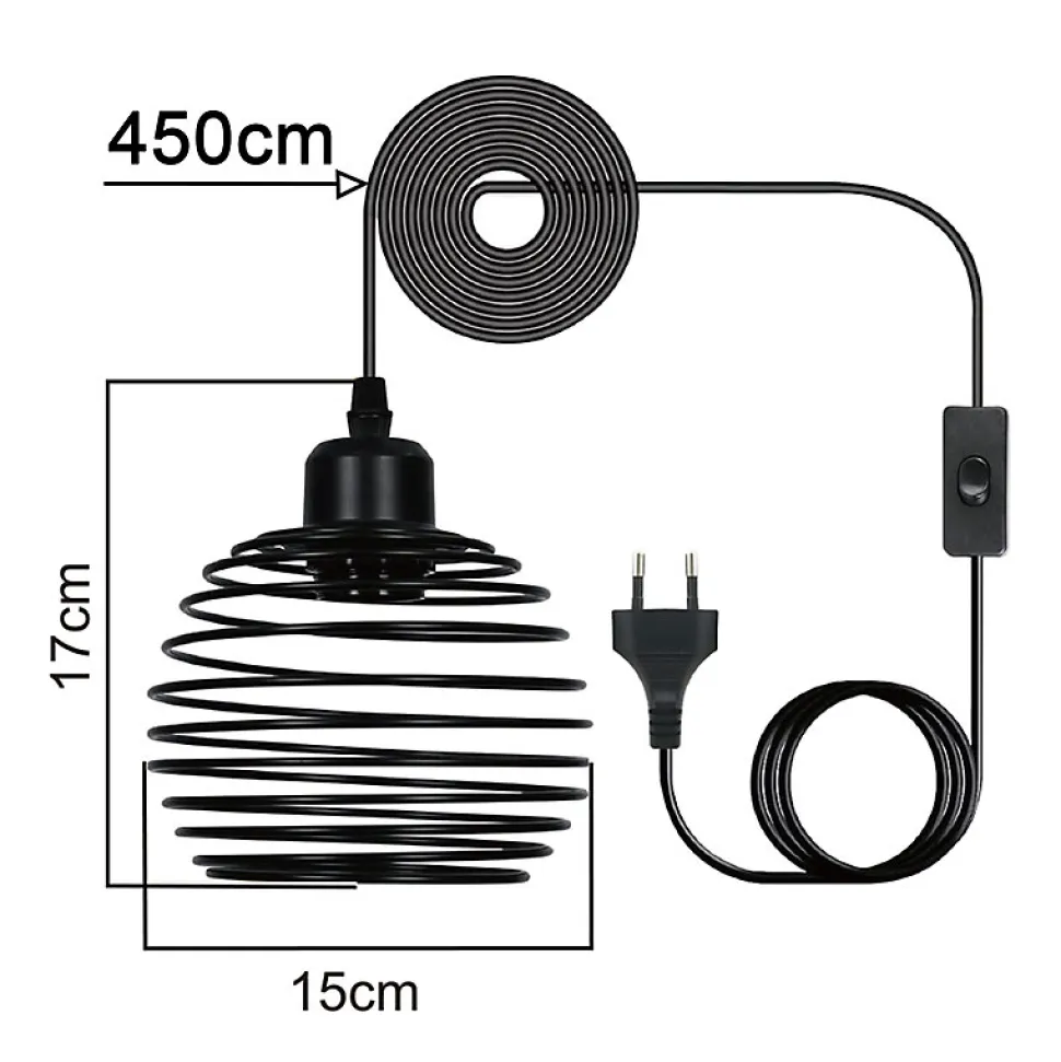 Design rétro industriel : cette suspension s’inspire d’un style rétro industriel classique. Ses lignes simples et distinctives et son éclat métallique noir créent une atmosphère riche et historique, ainsi qu’une touche industrielle rustique, ajoutant une touche unique à votre espace.Culot E27 universel : le culot est conçu pour les ampoules E27 courantes et compatible avec la plupart des ampoules E27 du marché. Vous pouvez choisir librement le type, la puissance et la température de couleur des ampoules pour un effet lumineux sur mesure.Caractéristiques techniques : Dimensions du produit : environ 13 x 15 x 450 cm. Diamètre du culot : 15 cm. Longueur du câble : 170 cm. Ampoule : E27*1 (ampoule non incluse). Matériau : fer. Alimentation et type de prise : filaire. Puissance maximale : 40 W. Tension : 220-240 V.INTERRUPTEUR PRATIQUE : ce luminaire est doté d’un câble fixe de 4,5 mètres et d’un interrupteur intégré qui vous permet de contrôler la lumière à tout moment, sans avoir à vous déplacer. Veuillez noter que la longueur du câble de suspension de cette suspension n’est pas réglable. Avant d’acheter, assurez-vous que la longueur de 4,5 mètres correspond à vos besoins d’installation.Texture métallique noire : Le corps du luminaire en métal noir est robuste et durable grâce à une fabrication et un traitement de surface précis. Il souligne également la texture distinctive et l’aspect haut de gamme du style industriel.