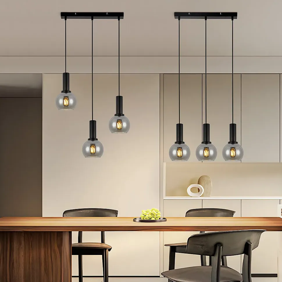 Conception unique : la lampe suspendue est conçue avec du verre gris fumé, ce qui donne à la source lumineuse une présence particulière et la combine avec différents styles de meubles pour améliorer l’esthétique de la pièce. En même temps, le verre offre une bonne transmission de la lumière, tirant le meilleur parti de la lumière dans la pièce et améliorant les effets de lumière et d’ombre dans la pièce pour créer une atmosphère chaleureuse et nostalgique.Hauteur réglable : cette lampe de table à manger suspendue peut ajuster librement la longueur du câble avant et après l’installation, avec une longueur maximale de 120 cm. Cela vous permet d’ajuster facilement la hauteur de la lampe en fonction de vos besoins d’espace et de votre style de conception, d’optimiser la hauteur de suspension et de garantir qu’elle s’harmonise parfaitement avec l’apparence générale de la pièce pour répondre aux besoins d’éclairage de différentes scènes.Source de lumière remplaçable E27 : l’ampoule de cette lampe suspendue est remplaçable et vous permet de changer de manière flexible les sources de lumière avec différentes douilles E27 pour répondre à vos besoins de bricolage et obtenir différents effets d’éclairage et intensités lumineuses. Qu’il s’agisse d’une lumière chaude, douce ou vive, elle constitue une source de lumière idéale pour votre pièce. De plus, la puissance de sortie maximale de la lampe est de 40 W et la tension d’entrée est de 230 V.Matériaux de haute qualité : cette lampe suspendue est fabriquée en verre de haute qualité, fabriqué à la main et offre une bonne transmission de la lumière et une bonne durabilité. Il crée des effets de lumière et d’ombre doux et enchanteurs et donne à la pièce un style rétro-élégant. De plus, il est doté d’un cadre en métal robuste qui a une structure stable et une capacité de charge élevée, ce qui le rend très sûr et fiable.