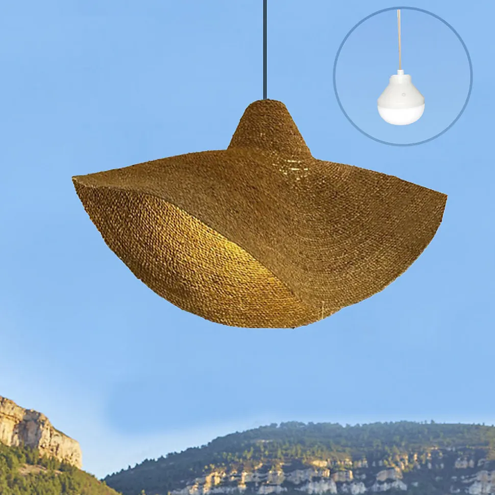 La suspension artisanale Kleia Nomad est fabriquée en herbe marine trèssée offrant un design majestueux de 90 cm de diamètre pour 13 cm de hauteur. Livrée avec l’ampoule LED autonome Lys, elle diffuse une lumière blanc chaud ou multicolore RGB réglable par télécommande. Son système magnétique innovant permet de la suspendre librement partout sans aucun raccordement électrique fixe, offrant une autonomie technique de 12 heures. Certifiée IP64, elle résiste aux projections d’eau pour un usage extérieur sous une pergola ou un salon de jardin. L’herbe marine est une fibre résistante conçue pour durer saison après saison sans dégradation structurelle. Maintenez l’abat-jour au sec. Les lignes équilibrées et les proportions étudiées apportent une présence élégante, sans surcharger la pièce.