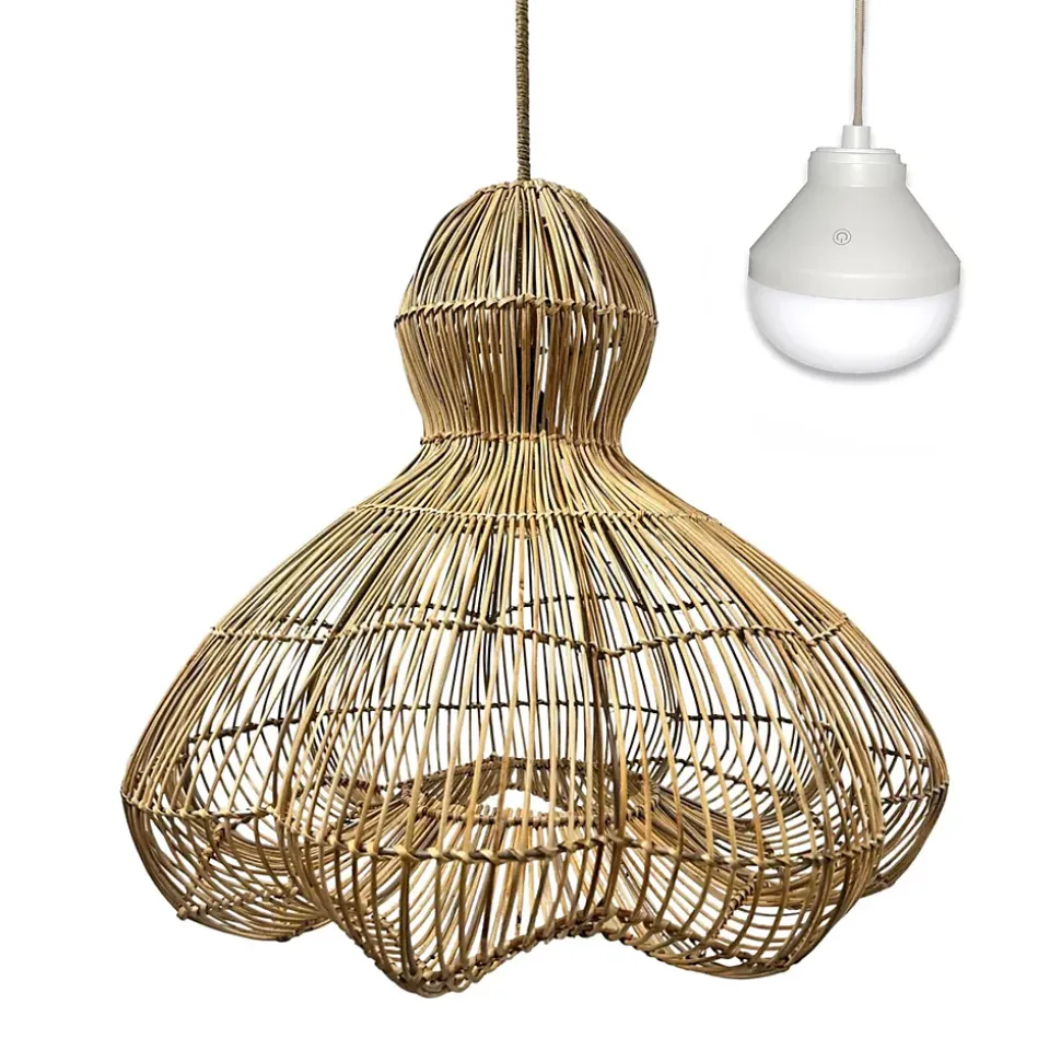 La suspension artisanale Ronda Nomad est fabriquée à partir de cordage naturel trèssé à la main au Vietnam offrant un look ethnique chic. Ce luminaire de 60 cm de diamètre pour 53 cm de hauteur est livré avec l’ampoule LED autonome Lys offrant un éclairage blanc chaud et multicolore RGB. Grâce à son système magnétique et sa télécommande, elle se suspend librement n’importe où sans aucun raccordement électrique pour illuminer vos espaces en toute liberté. Sa batterie rechargeable assure une autonomie technique de 11 heures. Certifiée IP44, elle résiste aux projections d’eau pour un usage extérieur durable sur une terrasse ou sous une pergola. Pour une longévité maximale, maintenez l’abat-jour au sec. Pour un effet encore plus chaleureux, combinez-la avec d’autres sources de lumière et variez les hauteurs d’installation.