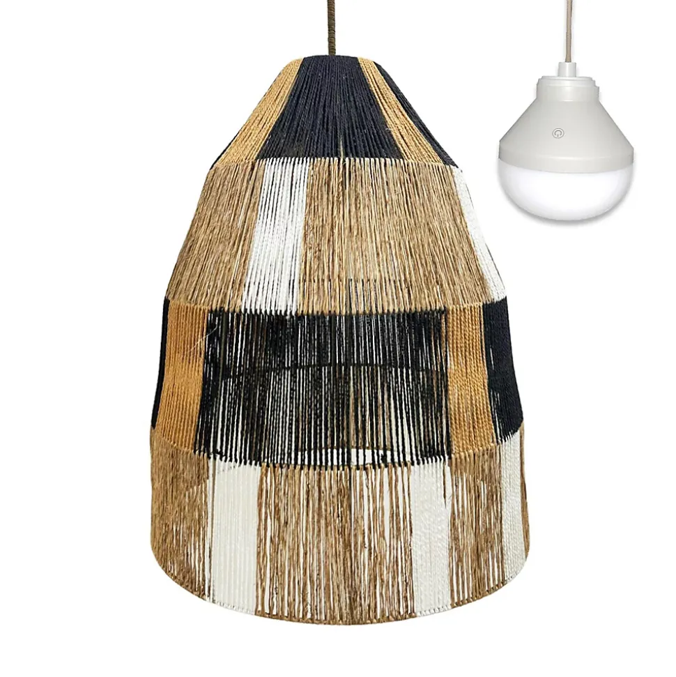 La suspension artisanale Zahara Nomad est fabriquée à partir de cordage naturel trèssé à la main offrant un design ethnique chic exceptionnel. Ce luminaire de 50 cm de diamètre pour 58 cm de hauteur est livré avec l’ampoule LED autonome Lys proposant un éclairage blanc chaud et multicolore RGB. Grâce à son système magnétique sans fil et sa télécommande, elle se suspend librement n’importe où sans aucun besoin de raccordement électrique, offrant une autonomie technique de 11 heures. Certifiée IP64, elle résiste aux projections d’eau pour un usage extérieur durable sur une terrasse ou une véranda. Le cordage naturel est reconnu pour sa solidité et sa résistance aux conditions extérieures variées. Son style intemporel s’accorde aussi bien avec une décoration moderne qu’avec un esprit plus bohème ou industriel.