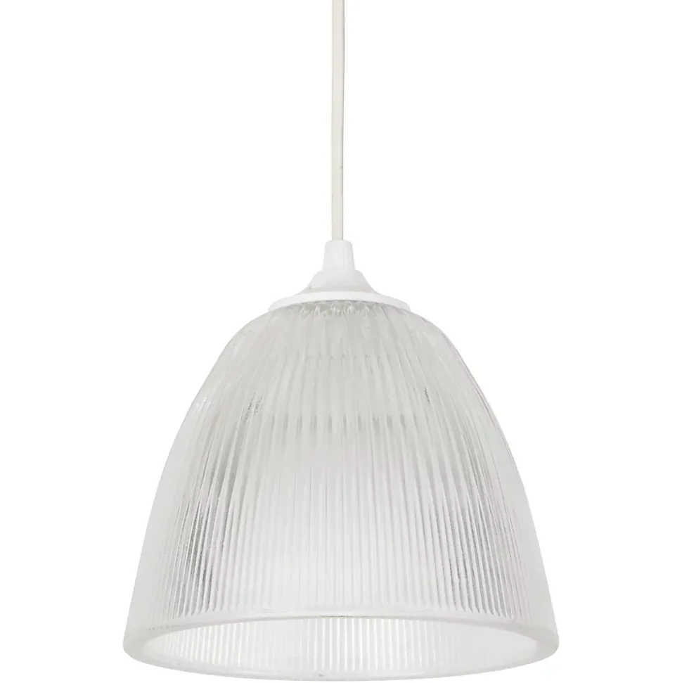 Suspension en verre strié. Coloris : strié transparent. IP20. D16cm – H13cm. Classe 2. E27-60W.