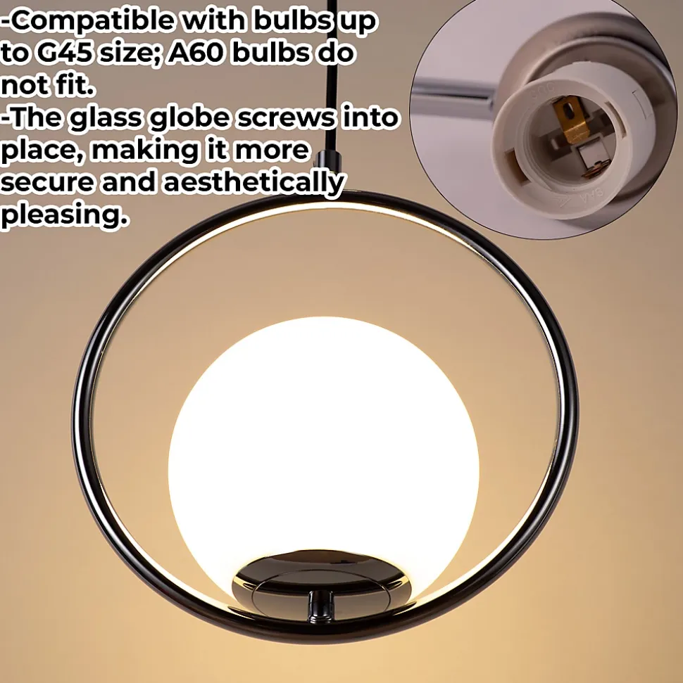 Suspension CLARA en Aluminium avec Globe en Verre Opalin Design Minimaliste pour Salon, Salle à Manger et ChambreDécouvrez l’élégance minimaliste de la suspension CLARA. Sa structure en aluminium et son globe en verre opalin créent une atmosphère relaxante et chaleureuse dans tout espace intérieur. Son design polyvalent s’intègre facilement aux intérieurs classiques, rétro ou contemporains.Disponible en noir, chromé et doré, elle s’adapte à différents styles décoratifs et permet de personnaliser l’éclairage grâce à sa compatibilité avec les ampoules E27 G45. Son installation est simple et sa hauteur est réglable pour plus de confort.Fiche Technique : Nom du produit : Suspension CLARA Type de douille : E27 (ampoule non incluse) Puissance maximale : 40W Matériau : Aluminium et Verre Diamètre du globe en verre : 15 cm Hauteur maximale réglable : 115 cm Utilisation intérieure : IP20 Tension nominale : 220-240 V/AC Couleurs disponibles : Noir, Chromé et DoréApportez une touche de sophistication et de lumière à votre intérieur avec la suspension CLARA. Choisissez votre couleur préférée et créez l’ambiance parfaite !