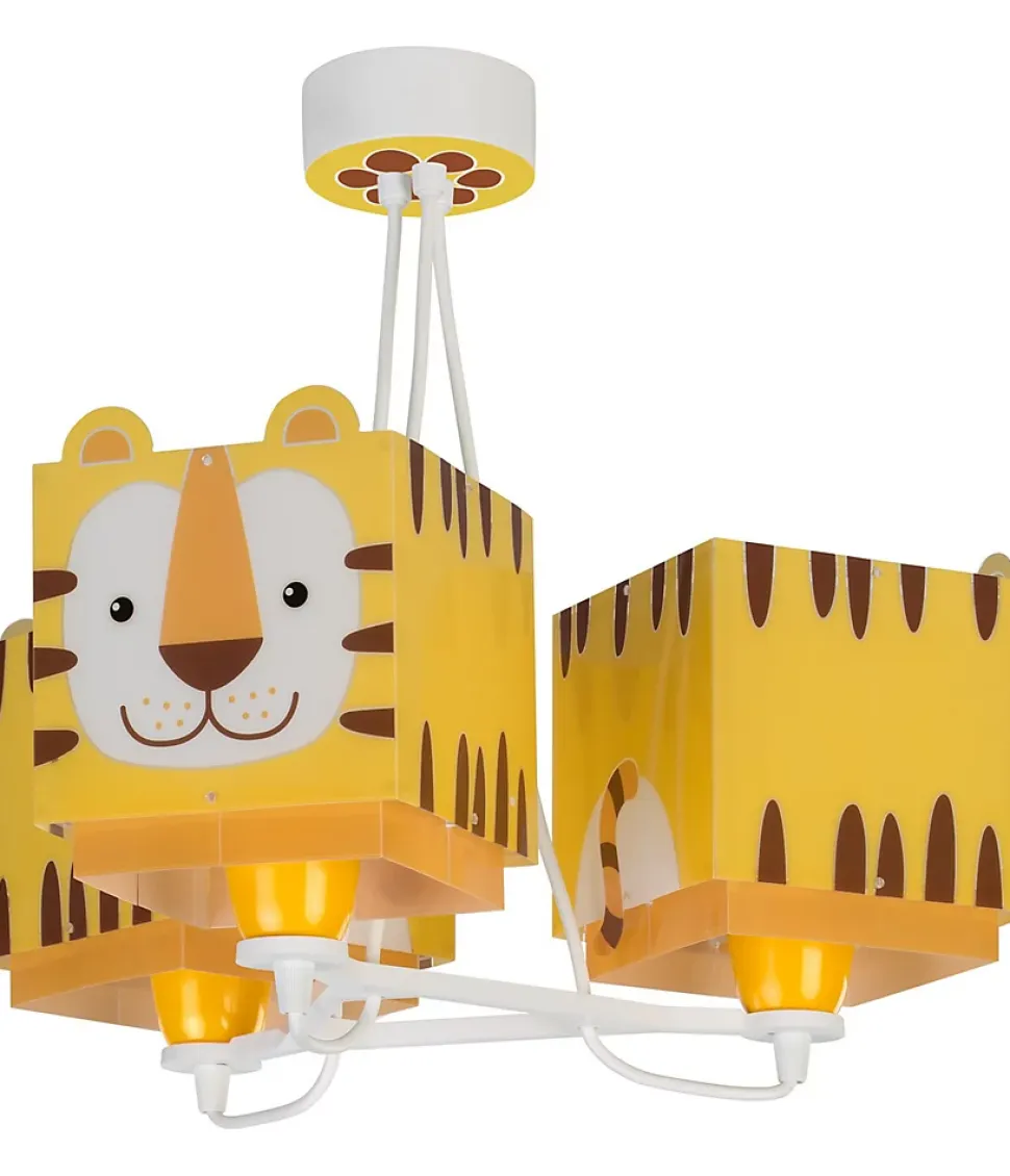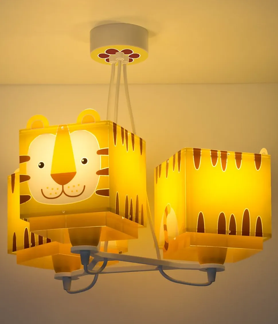 Acheter lustre pour enfant avec 3 lumières Little TigerLe lustre pour enfant avec 3 lumières Little Tiger vous offre l’éclairage supplémentaire dont vous avez besoin pour la chambre des enfants. Doté d’un double paravent en polypropylène transparent et d’un motif tigre original, il est parfait pour donner une touche de couleur originale à la chambre des enfants. Il est également réglable en hauteur pour une parfaite adaptation aux caractéristiques de la pièce.Combinez le lustre pour enfant 3 lumières Little Tiger avec les autres lampes Little Tiger pour créer un ensemble coloré