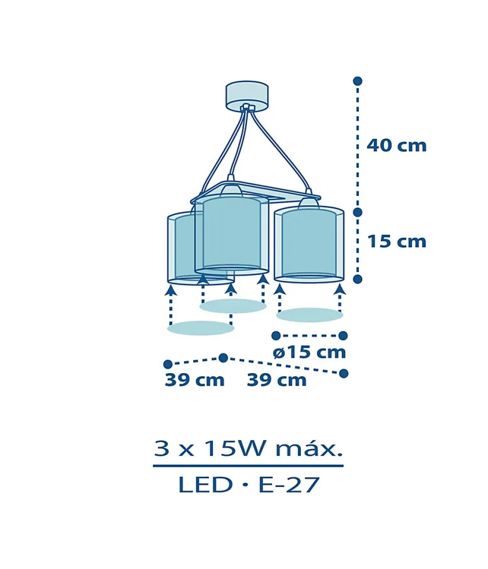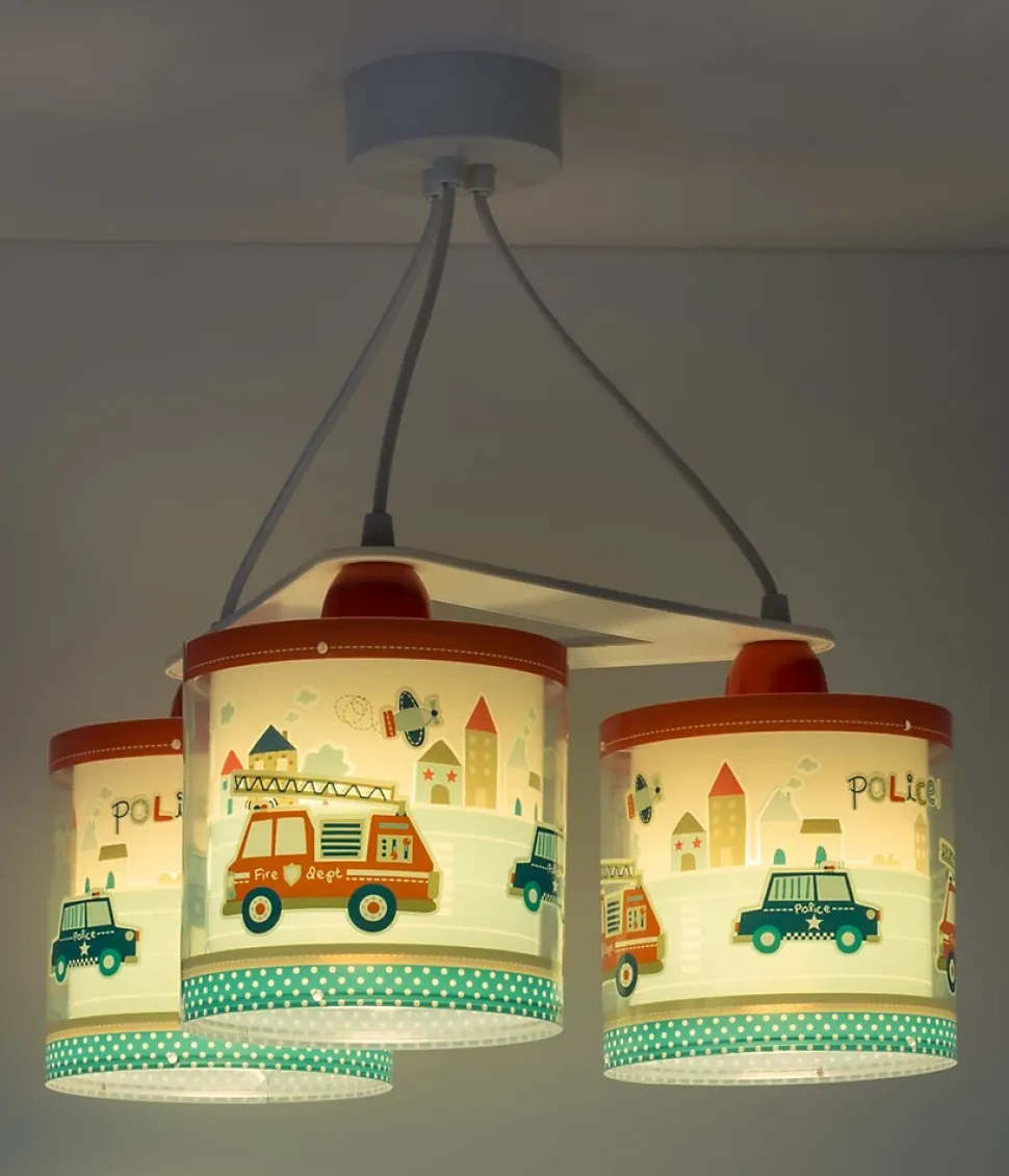 Acheter le lustre pour enfant à 3 lumières PoliceObtenez un éclairage supplémentaire avec le lustre pour enfant à 3 lumières, avec des voitures de police et des camions de pompiers. Il est doté d’un double écran en polypropylène transparent, d’un diffuseur de lumière inférieur pour éviter l’éblouissement, et d’un effet de fluorescence : il brille dans le noir pendant quelques minutes ! Il est également réglable en hauteur, il s’adaptera donc parfaitement à la chambre des enfants