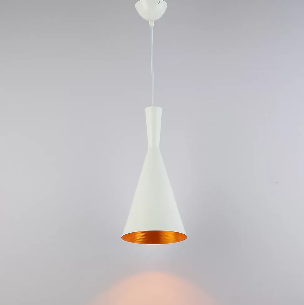 La suspension « CONICA », fabriquée en aluminium avec des finitions de haute qualité, se distingue par son design nordique élégant. Disponible en 2 couleurs, elle possède un intérieur doré qui reflète la lumière de manière subtile et chaleureuse.Parfaite au-dessus dune table de salle à manger, dans un salon, une cuisine ou dans des environnements commerciaux tels que restaurants et cafés.Dotée dun abat-jour en aluminium au fini mat, disponible en 6 couleurs pour sadapter à tous les styles. Installation facile avec tous les éléments inclus.Fonctionne avec une ampoule LED E27 (non incluse) et un câble de 1,3 m réglable en hauteur depuis le pavillon.Un choix sophistiqué pour ajouter une touche délégance contemporaine à votre intérieur.Caractéristiques principales :Matériau : AluminiumAmpoule : 1 x E27 (non incluse)Puissance max. : 40WCouleurs : blanc, noirTension : 220-240 V ACIP20 : usage intérieurDimensions : Ø180 x 380 mmCâble : 1300 mm (réglable)