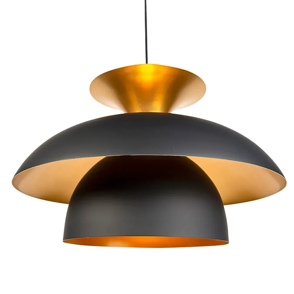 Si vous recherchez un véritable accroche-regard pour votre intérieur, alors cette suspension Titus est faite pour vous ! La suspension en aluminium noir avec ses différentes nuances superposées a une forme distinctive qui crée un effet lumineux ludique. L’intérieur doré des nuances ajoute à cet effet. La suspension est un excellent ajout à un salon, une cuisine ou un couloir contemporains. Cette lampe se connecte de la même manière que n’importe quelle autre suspension. La lampe mesure 170 cm de haut. L’abat-jour a un diamètre de 50 cm et une hauteur de 30 cm. La plaque de montage a un diamètre de 10 cm. Vous pouvez compléter la lampe avec une ampoule E27 (60 W maximum), à commander séparément. La lumière peut être atténuée à l’aide d’un variateur externe (variateur non inclus). Ajoutez une touche d’ambiance à votre intérieur avec la suspension Titus !