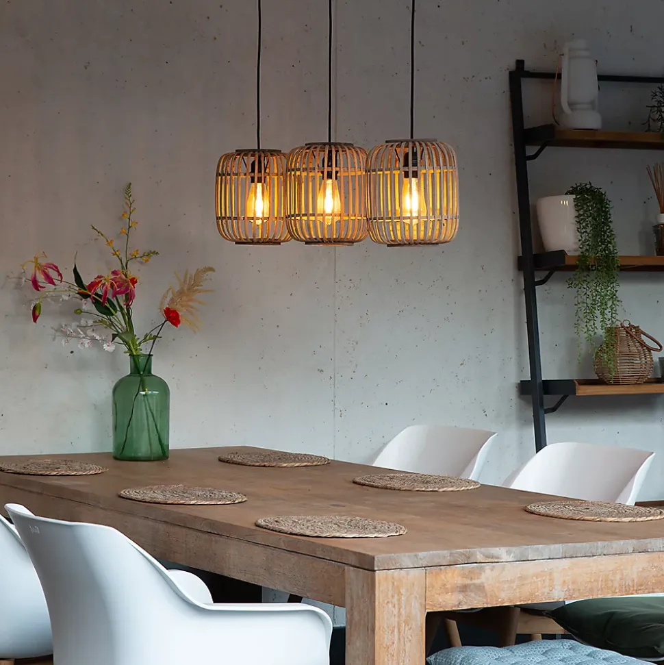 Cette suspension à trois têtes est un véritable atout pour votre intérieur ! Le rotin et les formes rondes la rendent vraiment spéciale et totalement tendance. Le rotin ajouré lui confère un look et une ambiance rustiques. Avec cette suspension Manille, vous disposez de trois lampes reliées entre elles par une plaque de montage centrale. Vous pouvez la suspendre exactement comme vous le souhaitez à l’aide du système de suspension fourni. Cette suspension mesure 100 cm de large et sa plaque de montage 90 cm. De plus, chaque abat-jour a un diamètre de 21 cm et une hauteur de 25,5 cm. Ces abat-jour peuvent accueillir des ampoules E27, à commander séparément ! Pensez aux superbes ampoules LED à filament. Elles s’intègrent parfaitement à ce design ajouré. La Manille est idéale pour être installée au-dessus d’une table de cuisine ou d’une table à manger, par exemple. Pour un confort encore plus grand (parce que c’est ce qu’on aime faire), vous pouvez également atténuer l’intensité de cette suspension à l’aide d’un variateur externe (à commander séparément). Complétez votre intérieur avec ce véritable atout pour l’ambiance !