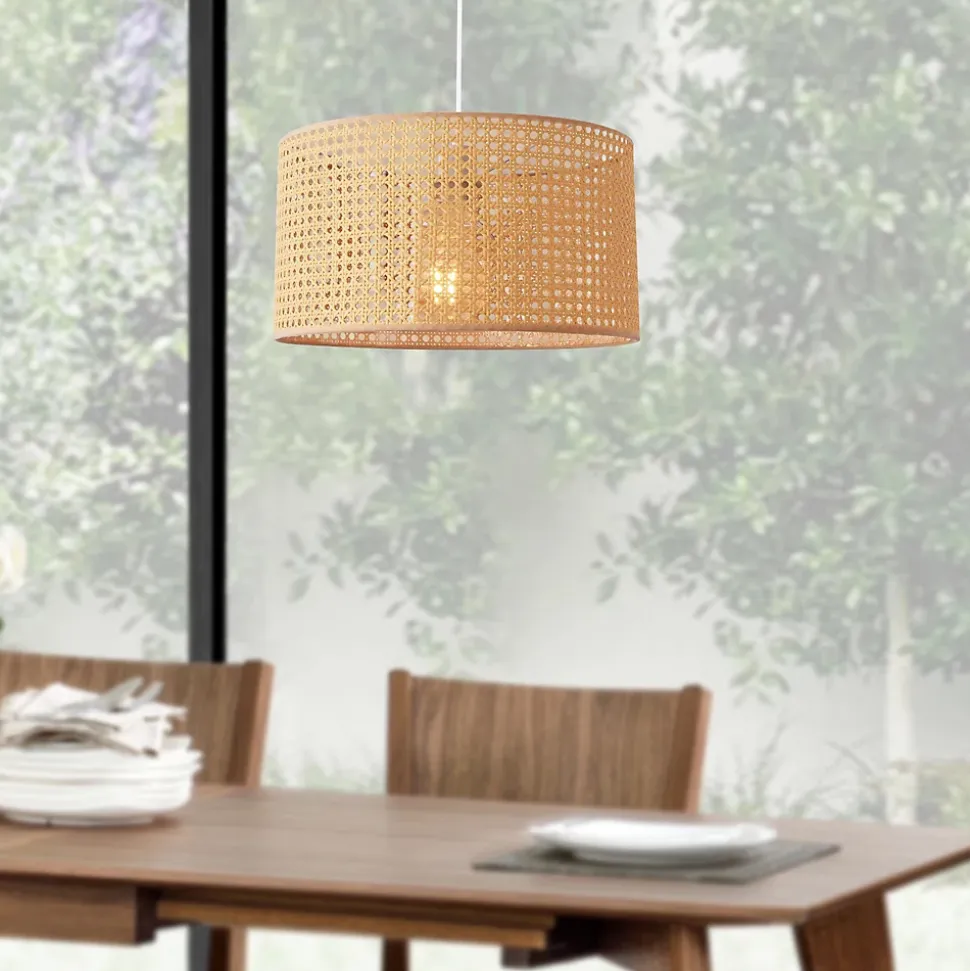 - Suspension cylindrique avec abat-jour effet rotin : Notre suspension ajoute une touche d’élégance et de design à votre intérieur. L’abat-jour crée une ambiance chaleureuse et accueillante dans toutes les pièces.