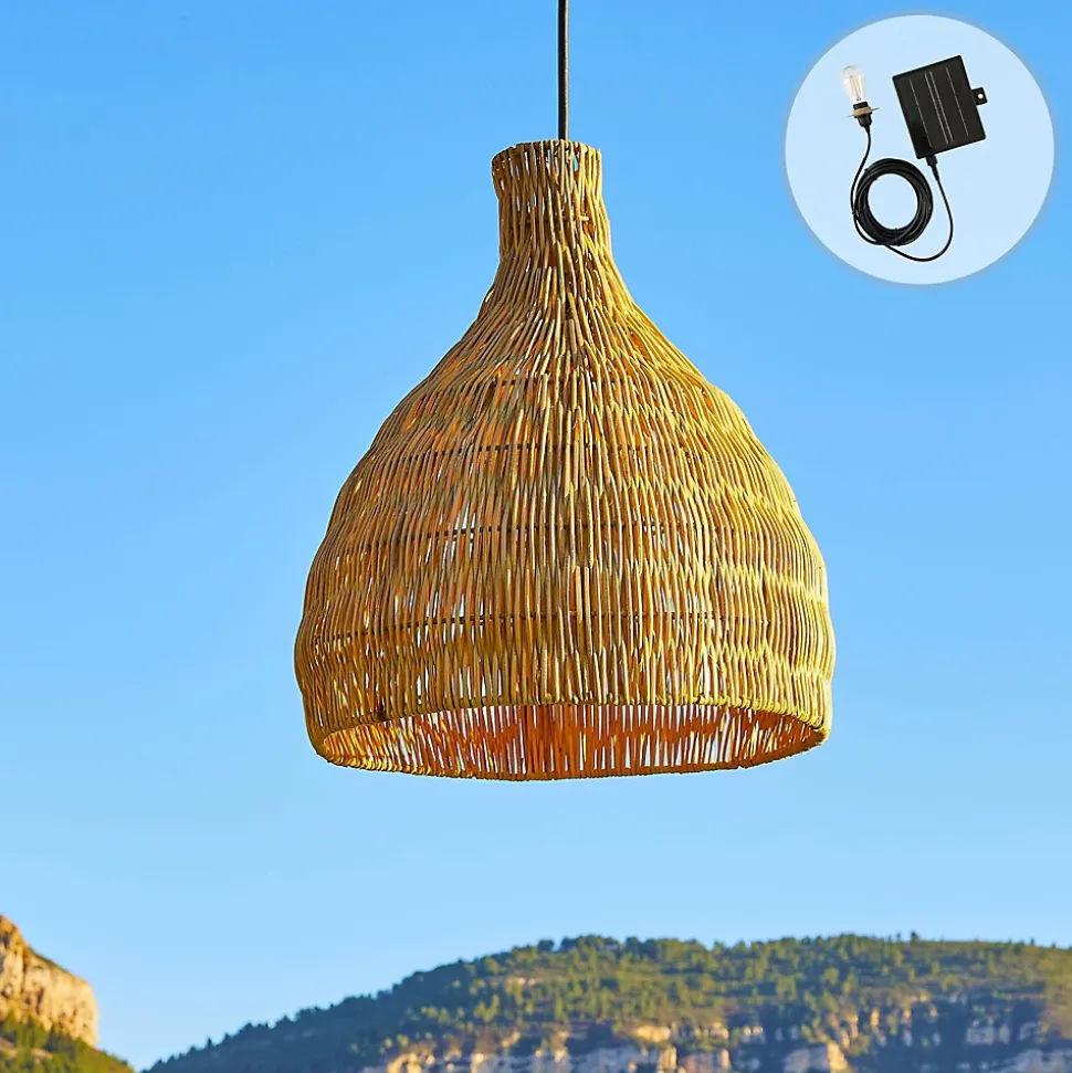 La suspension solaire Bella Solar est une création artisanale en rotin naturel offrant un trèssage soigné de 33 cm de diamètre pour 38 cm de hauteur. Elle est fournie avec le câble hybride Enna Solar et son ampoule LED remplaçable de 600 lumens blanc chaud. Ce système hybride offre une liberté totale avec une recharge solaire de 6 à 8 heures ou sur secteur de 220-240V, assurant une autonomie de 8 heures. Dimmable sur 4 niveaux d’intensité, elle s’adapte à toutes vos ambiances extérieures avec un style ethnique chic chaleureux. Le rotin est une fibre résistante et durable, idéale pour structurer vos terrasses durablement chaque soir de l’année. Un voyant intégré permet de vérifier l’énergie restante en un geste simple. Les lignes équilibrées et les proportions étudiées apportent une présence élégante, sans surcharger la pièce.