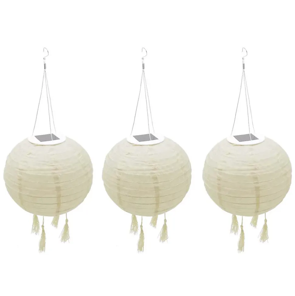Lot de 3 lampions solaires LUMISKY Himalaya, style bohème, LED blanc chaud, autonomie jusqu’à 8 h après charge complète (4-6 h), flux lumineux <100 lm, IP44, résistant aux UV, utilisation intérieur/extérieur, nettoyage facile avec un chiffon sec.
