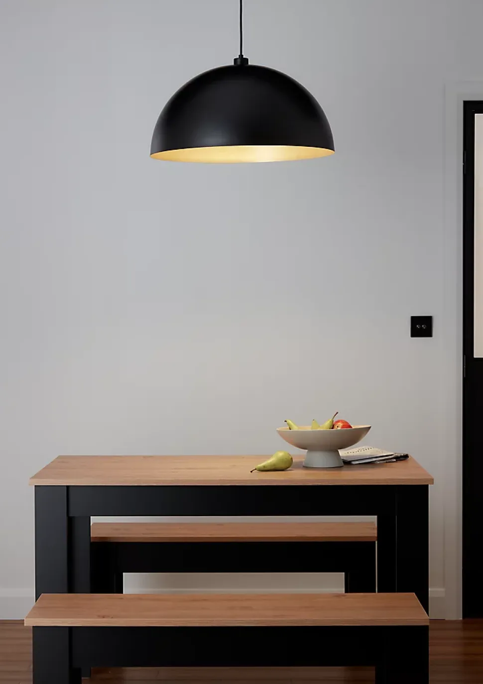 Nos suspensions ont été conçues dans un certain nombre de formes, de matières et de finitions pour vous permettre de trouver facilement celle qui vous convient. Cette suspension noire peut parfaitement servir de source de lumière principale
