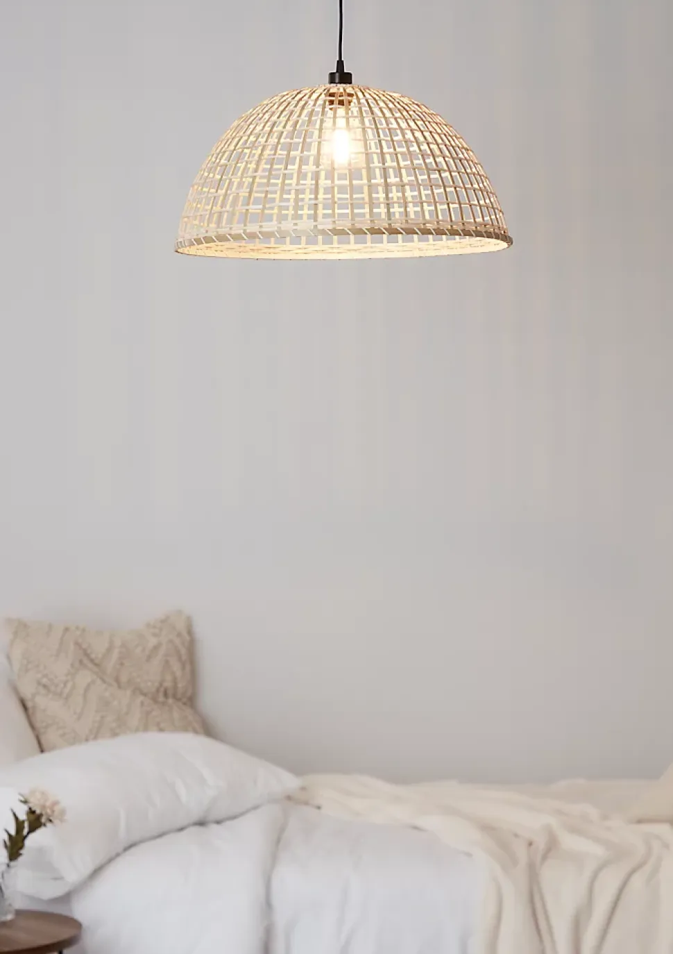 Nos suspensions ont été conçues dans un certain nombre de formes, de matières et de finitions pour vous permettre de trouver facilement celle qui vous convient. Cette suspension en fibre naturelle peut parfaitement servir de source de lumière principale