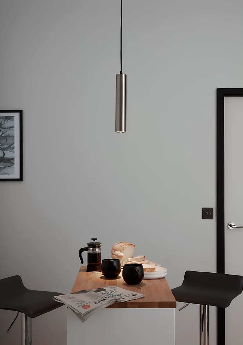 - Parce que la suspension cylindrique permet une diffusion de la lumière vers le bas, elle est parfaite au-dessus d’un bar, d’une table à manger ou dans une petite pièce
