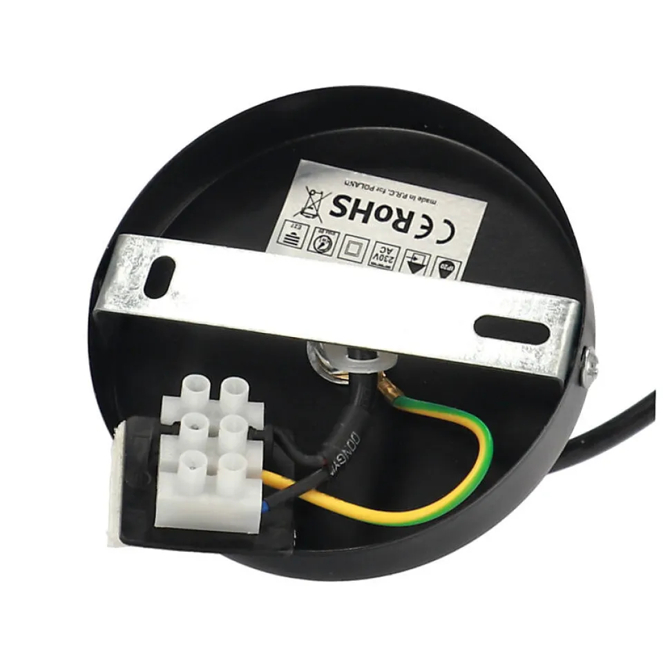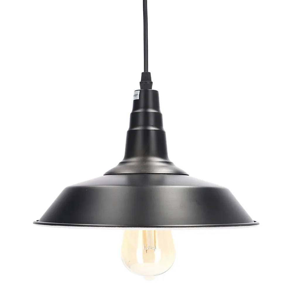 TENE E27 lampe suspendue noir mat EDO777175 Edo Solutions »Votre lieu – nos lumières »L’éclairage offre de nombreuses possibilités d’aménagement, et le large éventail de styles et de solutions permet à chaque intérieur d’être unique. La combinaison de formes, de matériaux et de textures différents, ainsi que les jeux d’ombre et de lumière, sont la recette d’un espace parfait et fonctionnel dans lequel vous vous sentez au mieux de votre forme.GÉNÉRAL ✔️Application : Intérieur ✔️Type de montage : en saillie ✔️Lieu d’installation : plafond ✔️Type de connexion : bloc à vis ✔️Couleur : noir, blanc – diffuseur intérieur ✔️Type de finition : mat ✔️Matériau : acier ✔️Réglable : non ✔️Abat-jour : mat ✔️Douille incluse : oui ✔️Type de douille : E27 ✔️Nombre de douilles : 1 ✔️Source lumineuse incluse : nonDONNÉES TECHNIQUES : ✔️Puissance maximale [W] : 60W ✔️Tension nominale [V] : 220-240 V AC ✔️Fréquence nominale [Hz] : 50-60 Hz ✔️IP : IP20 ✔️Classe de protection : I ✔️Teneur en mercure : non ✔️Conditions ambiantes [°C] : -20…50°C ✔️Distance minimale de l’objet éclairé [m] : 0,5mDimensions [mm] : ✔️soffite : ø98x25mm ✔️diffuseur : ø258x170mm ✔️La hauteur totale: 1180mm ✔️longueur du câble : 900mm ✔️distance entre les vis de montage : 54mm