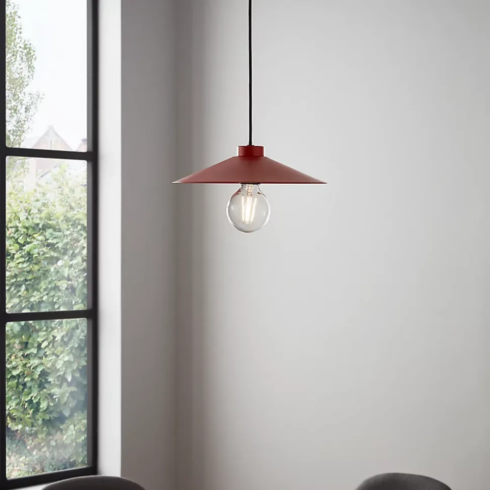Nos suspensions ont été conçues dans un certain nombre de formes, de matières et de finitions pour vous permettre de trouver facilement celle qui vous convient. Cette suspension rouge peut parfaitement servir de source de lumière principale