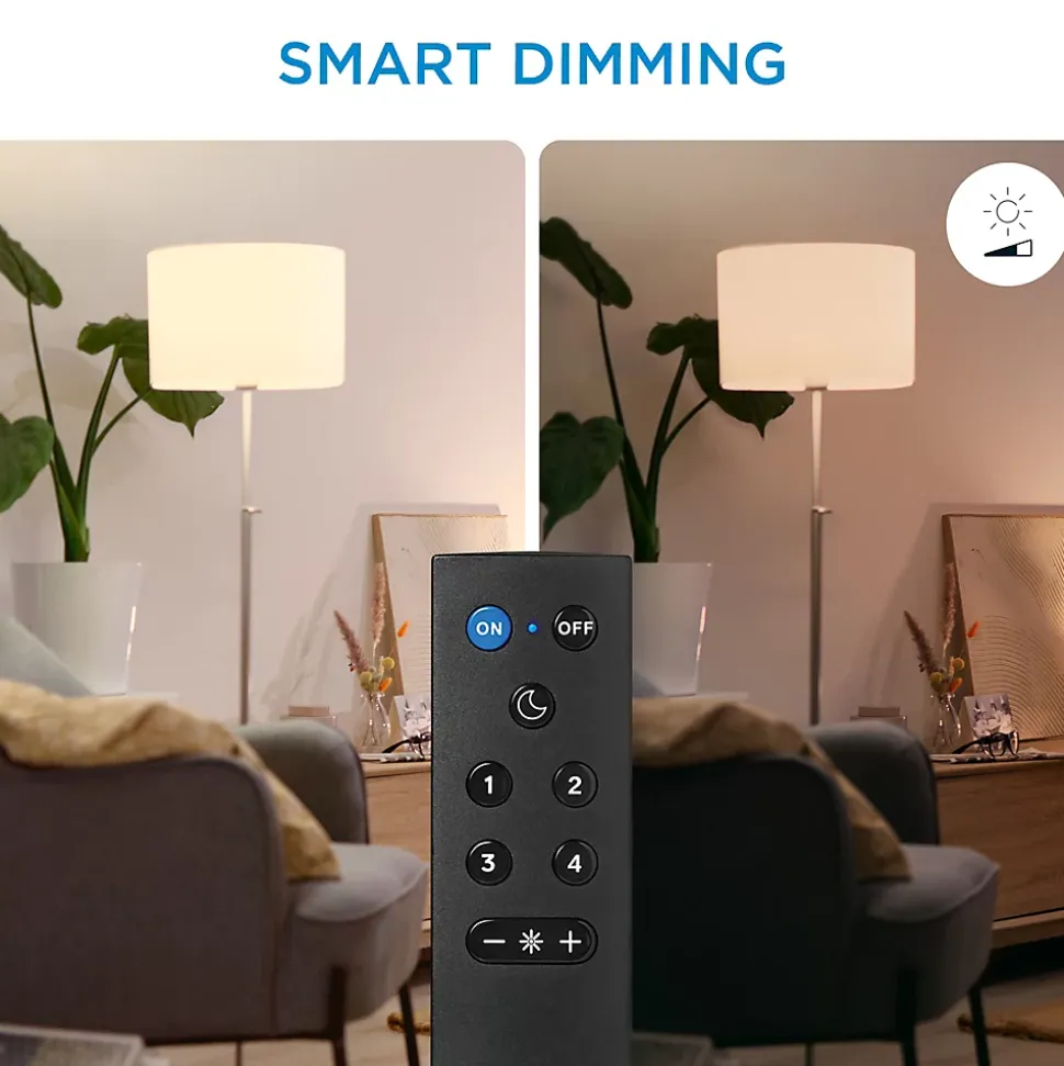 Vos lampes sont faciles et rapides à contrôler avec la WiZmote. Allumage et extinction, réglage de la luminosité, choix du mode veilleuse ou d’un de vos 4 scénarios d’éclairage préférés : il vous suffit simplement d’appuyer sur un bouton. La WiZmote est compatible avec tous les produits connectés WiZ, et peut contrôler toutes les lampes d’une pièce. Sa portée de 15 mètres est impressionnante et elle fonctionne même sans Wi-Fi.