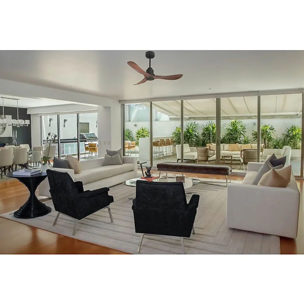 TenerifeTenerife_DC1_P3WoLe ventilateur de plafond Tenerife est un modèle modulable et multifonctionnel, idéal pour une utilisation toute l’année. En été, il assure une ventilation rafraîchissante, tandis qu’en hiver, il agit comme un destratificateur d’air, optimisant ainsi la récupération de chaleur. Son design moderne et sa polyvalence en font un choix judicieux pour améliorer le confort thermique de votre intérieur.Ce ventilateur ne se contente pas de ventiler, il régule également la température, vous permettant de réaliser des économies sur vos factures de chauffage et de climatisation.Technologie Silencieuse et ÉconomiqueÉquipé d’un moteur à courant continu (DC) entièrement en cuivre avec des roulements à billes auto-lubrifiés, le Tenerife garantit un fonctionnement silencieux et fiable. Ce moteur permet un contrôle précis de la vitesse avec ses 6 niveaux, tout en consommant peu d’énergie. Les ventilateurs de plafond Hyper Silence sont pratiquement inaudibles jusqu’à la vitesse 3, et au-delà, seul le mouvement de l’air peut être perçu.Installation et PersonnalisationLe Tenerife est livré avec deux tiges de plafond de 12,5 cm et 25 cm, avec des options de prolongateurs de 60, 120 et 180 cm disponibles. Les pales, en ABS léger et résistant ou en bois, peuvent être configurées en 2 ou 3 unités selon vos préférences. Le modèle actuel est idéal pour des pièces de 25