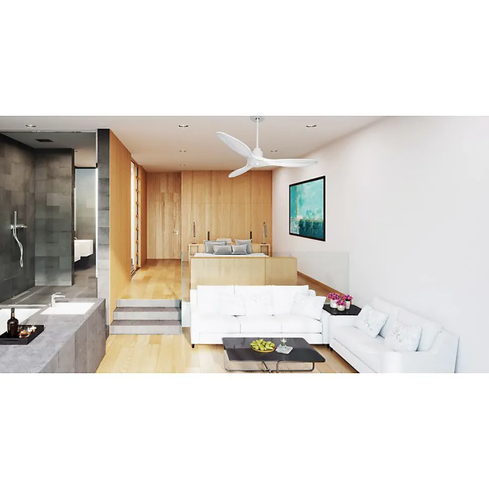 Tenerife RingTE4_P5Wi132_RingWiLe ventilateur de plafond Tenerife est un modèle modulable et polyvalent, conçu pour offrir une ventilation efficace en été et une récupération de chaleur en hiver. Son design moderne s’accompagne d’une fonctionnalité exceptionnelle, faisant de lui un véritable régulateur thermique qui contribue à réduire vos coûts de chauffage et de climatisation.Technologie Silencieuse et ÉconomiqueÉquipé d’un moteur à courant continu (DC) fabriqué entièrement en cuivre avec des roulements à billes auto-lubrifiés, le Tenerife assure un fonctionnement silencieux et fiable. Ce moteur DC permet un contrôle précis de la vitesse grâce à ses six paliers, tout en garantissant une faible consommation d’énergie. Les ventilateurs de la gamme Hyper Silence sont pratiquement inaudibles jusqu’à la vitesse 3, et seul le mouvement de l’air est perceptible à des vitesses plus élevées.Options de Montage et PalesLe Tenerife est livré avec deux tiges de plafond de 12,5 cm et 25 cm, avec des options supplémentaires de 60, 120 et 180 cm disponibles. Les jeux de pales, composés de trois unités, sont disponibles en ABS léger et résistant ou en bois, et peuvent être montés en configuration de 2 ou 3 pales selon vos préférences.Performance et CommandesAvec une envergure de 132 cm, le Tenerife est idéal pour des pièces de 25 à 40 m² en été et de 60 à 90 m² en hiver. Il offre une puissance de ventilation de 3450 à 12480 m³/h, avec une vitesse de rotation de 70 à 210 RPM et un niveau son