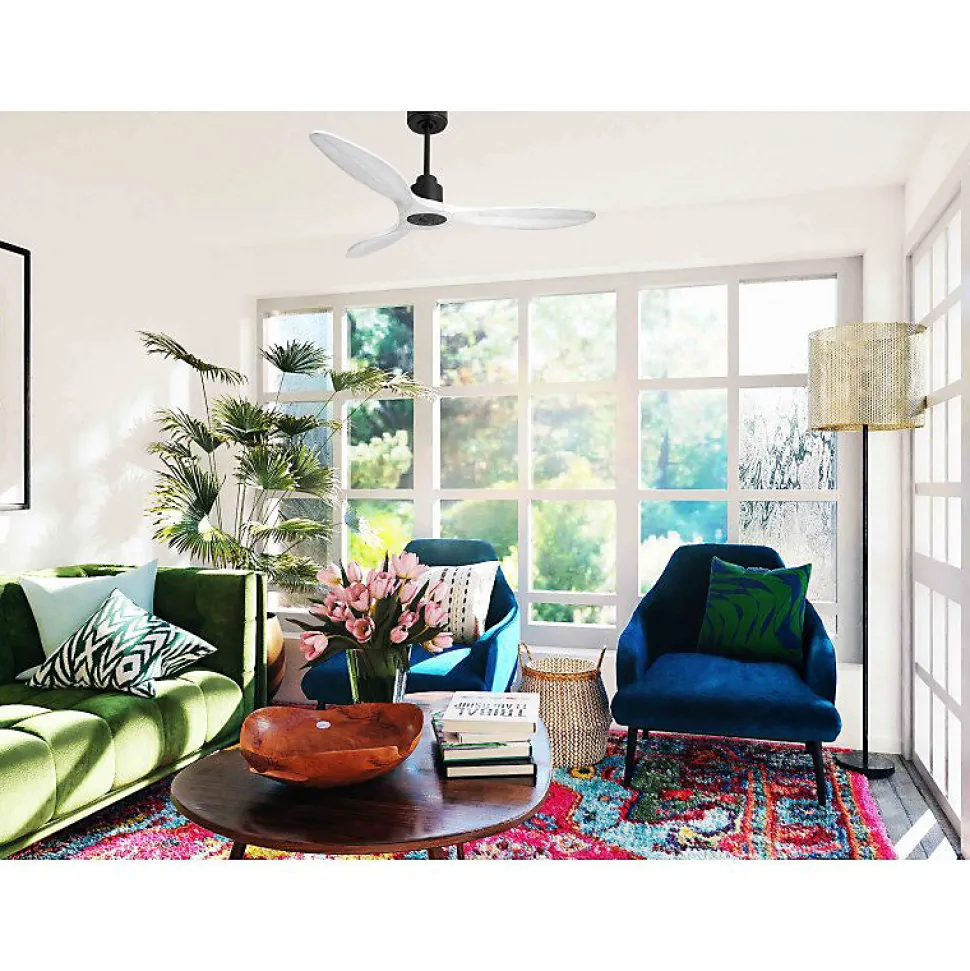 Tenerife RingTE1_P5Wi132_RingBkLe ventilateur de plafond Tenerife est un modèle modulable et multifonctionnel, qui agit également comme un destratificateur d’air. Il assure une ventilation efficace en été et optimise la récupération de chaleur en hiver, offrant ainsi une solution complète pour le confort thermique de votre intérieur.Ce ventilateur se distingue par son design moderne et sa capacité à réguler la température, permettant des économies significatives sur vos factures de chauffage et de climatisation. Équipé d’un moteur à courant continu (DC) en cuivre à 100% avec des roulements à billes auto-lubrifiés, il garantit un fonctionnement silencieux et sans souci.Le moteur DC offre un contrôle précis de la vitesse grâce à ses six paliers, tout en consommant peu d’énergie. Les ventilateurs Hyper Silence sont pratiquement inaudibles jusqu’à la vitesse 3, et même aux vitesses supérieures, seul le mouvement de l’air est perceptible.Le modèle Tenerife est livré avec deux tiges de plafond de 12,5 cm et 25 cm, avec des options supplémentaires de tiges de 60, 120 et 180 cm. Les pales, disponibles en ABS léger et résistant ou en bois, peuvent être montées en configuration de 2 ou 3 pales selon vos préférences.La configuration P5 est idéale pour des pièces de 25 à 40 m² en été et de 60 à 90 m² en hiver. Avec un diamètre de 132 cm, il offre une puissance de 3450-12480 m³/h, des rotat