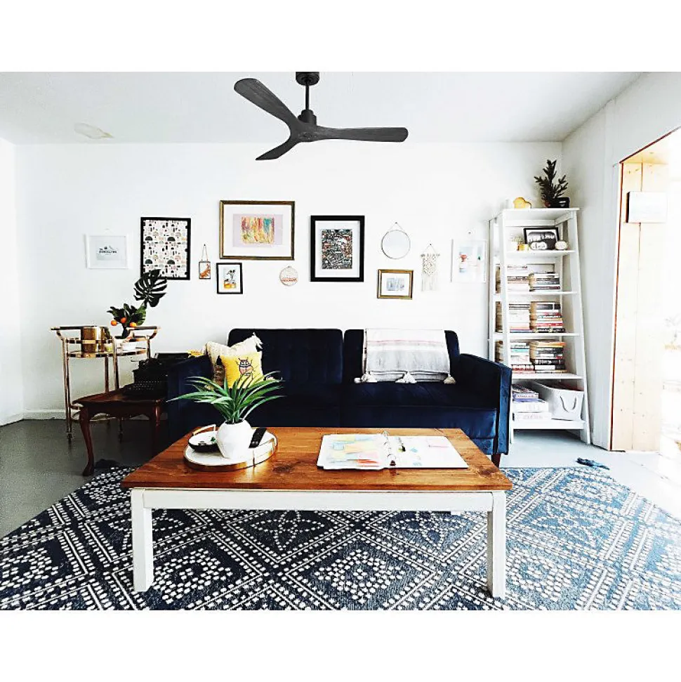 Tenerife RingTE1_P6Bk132_RingBkLe ventilateur de plafond Tenerife est un dispositif modulable et polyvalent, conçu pour offrir une ventilation efficace en été et une récupération de chaleur en hiver. Grâce à son design moderne et ses fonctionnalités avancées, il se distingue comme un régulateur thermique idéal pour économiser sur les coûts de chauffage et de climatisation.Technologie et PerformanceÉquipé d’un moteur à courant continu (DC) 100 % cuivre avec roulements à billes auto-lubrifiés, le ventilateur Tenerife garantit un fonctionnement silencieux et fiable. Ce moteur DC permet un contrôle précis de la vitesse avec six niveaux différents, tout en assurant une faible consommation d’énergie. Les ventilateurs de plafond Hyper Silence sont pratiquement inaudibles jusqu’à la vitesse 3, et à des vitesses plus élevées, seul le mouvement de l’air peut être perçu.Installation et OptionsLe modèle Tenerife est livré avec deux tiges de plafond de 12,5 cm et 25 cm, avec des options supplémentaires de tiges de 60, 120 et 180 cm. Les pales, disponibles en ABS léger et résistant ou en bois, peuvent être montées en configurations de 2 ou 3 pales selon les préférences. La version actuelle inclut le jeu de pales P6, adapté pour des pièces de 25 à 40 m² en été et de 60 à 90 m² en hiver.Caractéristiques Techniques Taille : 132 cm Matériau des pales : Bois Puissance : 3450-12480 m³/h Vitesse : 70-210 RPM Niveau sonore : 28-45 dB