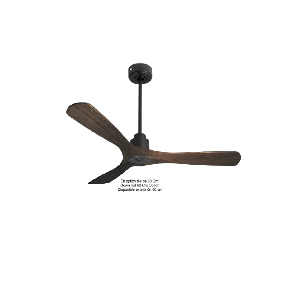 Tenerife RingTE1_P6Dw132_RingBkLe ventilateur de plafond Tenerife est un appareil polyvalent, conçu pour offrir une ventilation efficace en été et récupérer la chaleur en hiver grâce à sa fonction de destratification. Son design moderne s’allie à une fonctionnalité avancée, faisant de lui un régulateur thermique idéal pour économiser sur les coûts de chauffage et de climatisation.Technologie Silencieuse et ÉconomiqueÉquipé d’un moteur à courant continu (DC) en cuivre avec roulements à billes auto-lubrifiés, le Tenerife garantit un fonctionnement silencieux et fiable. Ce moteur DC permet un contrôle précis de la vitesse avec ses 6 niveaux, tout en étant économe en énergie. Les ventilateurs de plafond Hyper Silence, comme le Tenerife, sont pratiquement inaudibles jusqu’à la vitesse 3, avec seulement le bruit du mouvement de l’air perceptible à des vitesses plus élevées.Options de Montage et PersonnalisationLe Tenerife est livré avec deux tiges de plafond de 12,5 cm et 25 cm, avec des options supplémentaires de 60, 120 et 180 cm disponibles. Les jeux de pales, composés de 3 unités en ABS ou en bois, peuvent être configurés selon vos préférences avec 2 ou 3 pales montées sur le moteur. Le modèle P6 est idéal pour des pièces de 25 à 40 m² en été et de 60 à 90 m² en hiver.Caractéristiques TechniquesTaille : 132 cmMatériau : BoisPuissance : 3450-12480 m³/hRPM : 70-210Niveau sonore : 28-45 dBConsommation : 3-21 WattsFonctionnalités AvancéesLe ven
