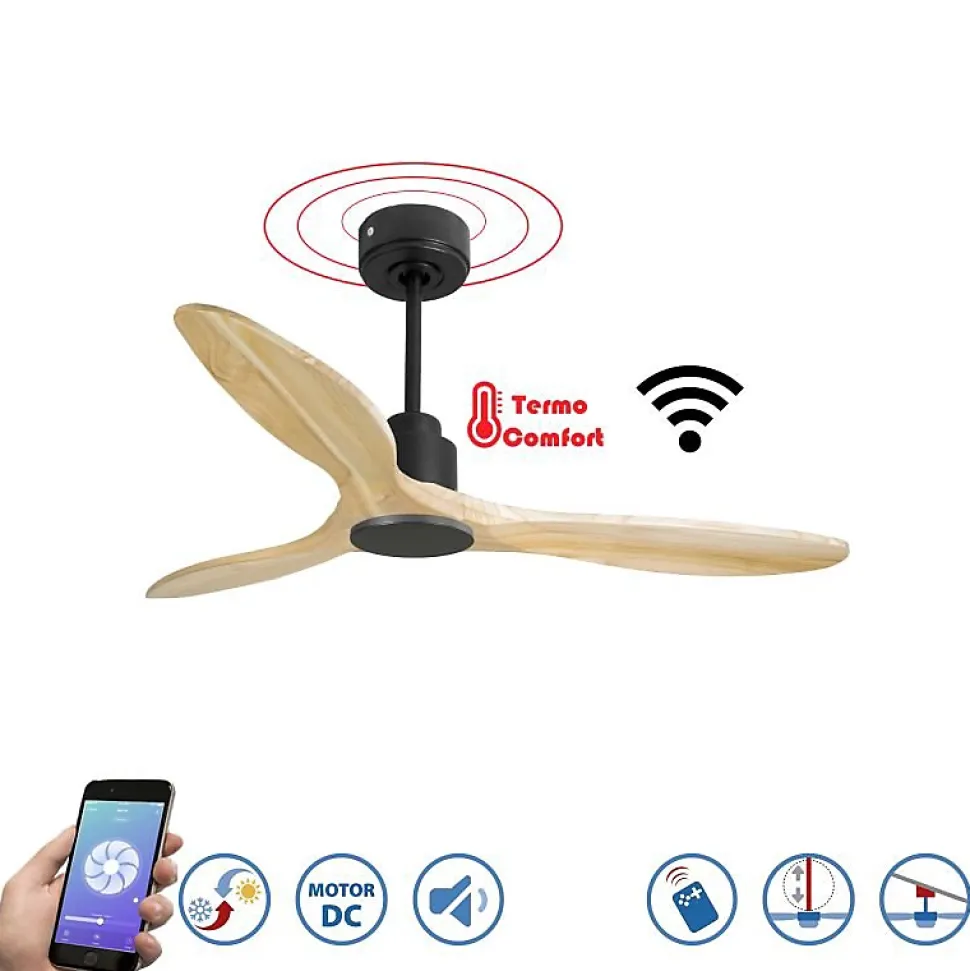 TenerifeTE1_P5Sw132Le ventilateur de plafond Tenerife est un appareil modulable et multifonctionnel, conçu pour offrir une ventilation efficace en été et optimiser la récupération de chaleur en hiver. Son design moderne et ses fonctionnalités avancées en font un choix idéal pour ceux qui cherchent à réguler la température de leur intérieur tout en réalisant des économies d’énergie.Fonctionnalités AvancéesÉquipé d’un moteur à courant continu (DC) 100 % cuivre avec roulements à billes auto-lubrifiés, le Tenerife assure un fonctionnement silencieux et fiable. Ce moteur DC permet un contrôle précis de la vitesse avec ses 6 niveaux, tout en garantissant une faible consommation d’énergie. Grâce à sa technologie Hyper Silence, le ventilateur reste pratiquement inaudible jusqu’à la vitesse 3, et seul le mouvement de l’air est perceptible à des vitesses plus élevées.Installation et OptionsLe Tenerife est livré avec deux tiges de plafond de 12,5 cm et 25 cm, avec des options de prolongateurs de 60, 120 et 180 cm disponibles. Les pales, disponibles en ABS léger et résistant ou en bois, peuvent être montées en configuration de 2 ou 3 pales selon vos préférences. Le modèle P5 est adapté pour des pièces de 25 à 40 m² en été et de 60 à 90 m² en hiver.Caractéristiques Techniques Taille : 132 cm Matériau : Bois Puissance : 3450-12480 m³/h RPM : 70-210 Niveau sonore : 28-45 dB Consommation : 3-21 WattsCon