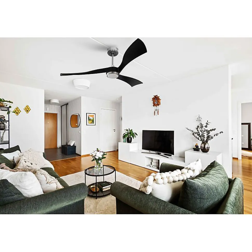 Twist de KlassfanLe ventilateur de plafond Twist de Klassfan incarne le design contemporain avec des performances de pales remarquables. Ses pales fortement incurvées et son angle de « pitch » prononcé garantissent une efficacité optimale, même à basse vitesse.Performance et SilenceConçu pour des rotations lentes, le Twist assure une ventilation douce, parfaite pour les grandes pièces et les bureaux. La première vitesse atteint 50 tours par minute et la deuxième 60 tours par minute, avec un niveau sonore inférieur à 26 dB(A), le plaçant parmi les ventilateurs les plus silencieux. Pour une ventilation plus intense, il peut atteindre jusqu’à 140 tours par minute.Technologie FullFlowLe Twist est équipé du système FullFlow de Klassfan, qui ajuste la puissance du moteur selon les besoins. Avec un réglage sur Niveau 5, il offre une augmentation de puissance de 15%, s’adaptant ainsi parfaitement à votre espace.Consommation ÉnergétiqueLe moteur Ouray du Twist varie de 14 à 50 watts selon le réglage FullFlow, avec une consommation minimale de 6.5 watts et maximale de 50 watts en programme 5. Cela permet une personnalisation complète des performances.Fonctionnalités AvancéesLe Twist est un véritable régulateur thermique, intégrant un thermostat, un Wifi programmable, une fonction de déstratification et une télécommande RF. En option, ajoutez le Thermafeel, un thermostat déporté, et un boîtier de commande mural pour une gestion encore plus précise.Éclairage ModerneLe point lumineux L1 du Twist, équipé d’une plaque LED dimmable, offre trois tons de lumière : blanc chaud, pur et froid. La fonction mémoire conserve vos réglages pour un confort d’utilisation optimal.Caractéristiques Surface de portée : mode