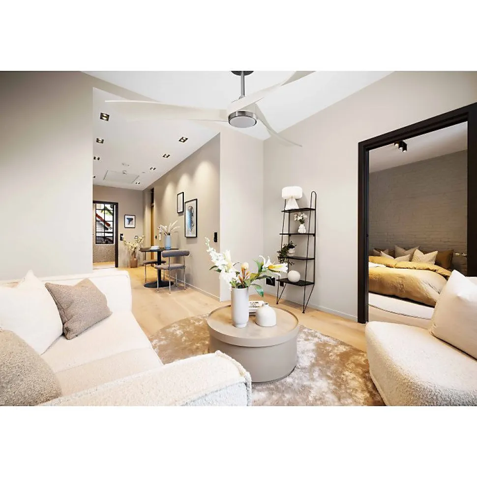 Twist de KlassfanDécouvrez le Twist de Klassfan, un ventilateur de plafond au design contemporain, reconnu pour ses performances exceptionnelles. Ses pales sont ingénieusement incurvées avec un angle de « pitch » prononcé, garantissant une efficacité optimale même à basse vitesse.Performance et SilencieuxConçu pour des rotations lentes, le Twist assure une ventilation douce, idéale pour les grandes pièces et bureaux. Avec une première vitesse à 50 tours par minute et une deuxième à 60 tours par minute, le niveau sonore reste inférieur à 26 dB(A), le plaçant parmi les ventilateurs les plus silencieux disponibles. Pour une ventilation plus intense, il peut atteindre jusqu’à 140 tours par minute.Technologie FullFlowÉquipé du système FullFlow de Klassfan, le Twist ajuste la puissance du moteur selon vos besoins. Avec un réglage au Niveau 5, il offre une augmentation de puissance de 15%, optimisant ainsi ses performances. Le moteur Ouray varie de 14 à 50 watts, avec une consommation énergétique de seulement 6.5 watts à 50 watts en vitesse maximale.Fonctionnalités AvancéesLe Twist intègre des fonctionnalités innovantes telles qu’un thermostat, une connectivité Wifi programmable, et une télécommande RF. En option, ajoutez le Thermafeel, un thermostat déporté, et un boîtier de commande mural. Ce ventilateur est un véritable régulateur thermique, éliminant les variations de température pour une ventilation contrôlée et automatisée.Éclairage ModerneLe point lumineux L1 du Twist, avec sa plaque LED dimmable, propose trois tons de lumière : blanc chaud, blanc pur et blanc froid. Grâce à la fonction mémoire, vos réglages sont conservés pour une utilisation simplifiée.Caractéristiques Surface de portée : mode <a href= »https://www.ventilateurs-plafond.com/78-destratificateur-d-air » title= »déstratificate