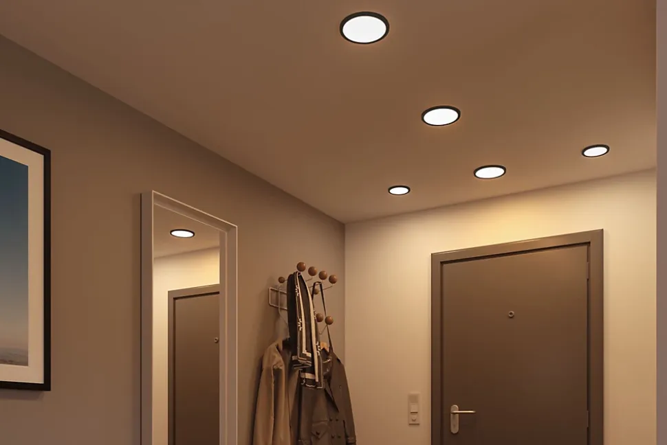 VariFit : montage facile avec des ressorts de serrage à ajustement sans paliers|Un simple commutateur permet de faire varier la luminosité sur 3 niveaux|Avec ampoule LED intégrée|En plastique facile d’entretien|Pour raccordement direct au secteur 230V|Protection IP : IP44 – Protection contre les projections d’eau