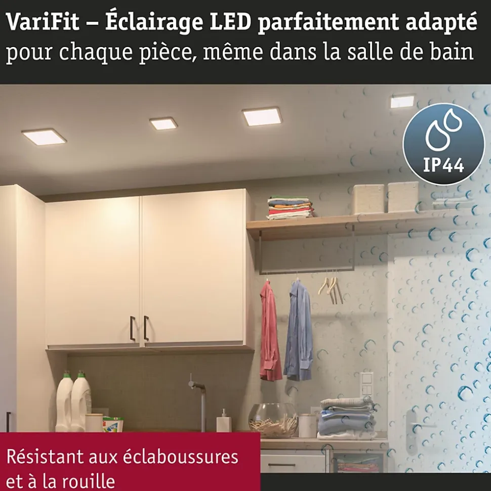 VariFit : montage facile avec des ressorts de serrage à ajustement sans paliers|Avec ampoule LED intégrée|En plastique facile d’entretien|Température de couleur: 4000K – Blanc neutre|Pour raccordement direct au secteur 230V|Protection IP : IP44 – Protection contre les projections d’eau