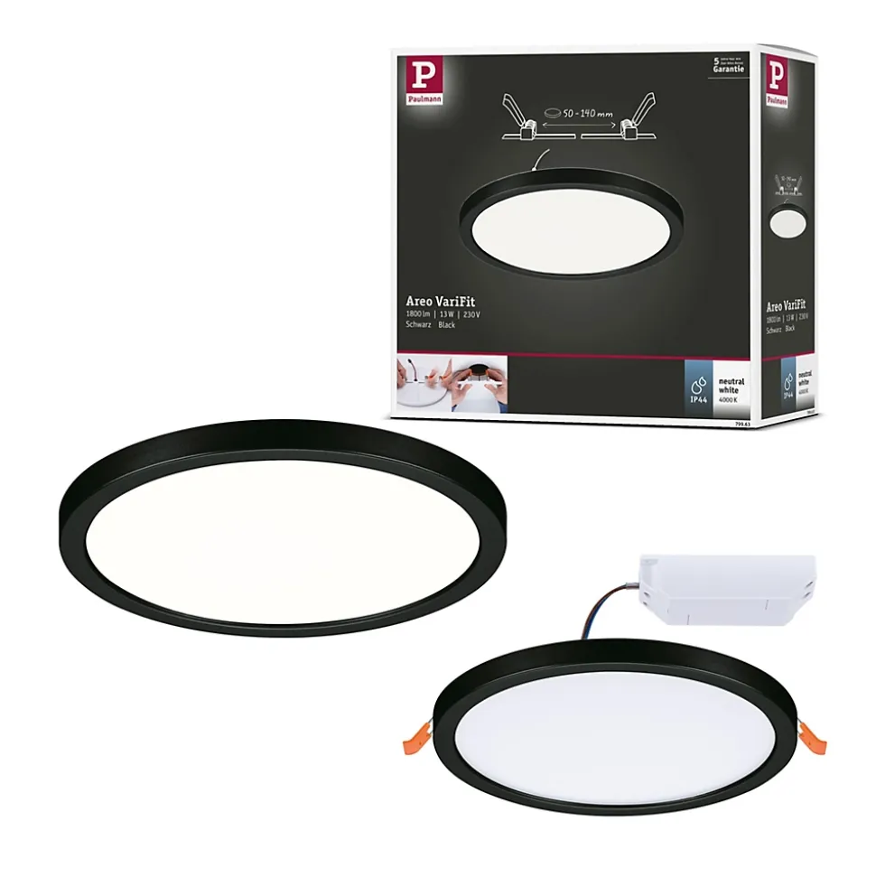 VariFit : montage facile avec des ressorts de serrage à ajustement sans paliers|Avec ampoule LED intégrée|En plastique facile d’entretien|Température de couleur: 4000K – Blanc neutre|Pour raccordement direct au secteur 230V|Protection IP : IP44 – Protection contre les projections d’eau
